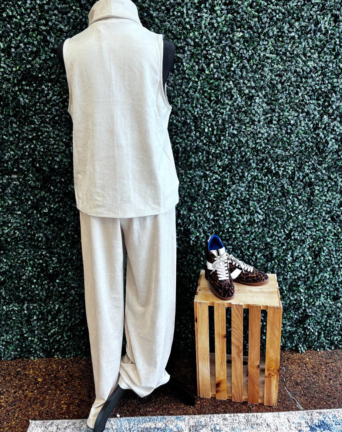 Loungewear doesn't have to be frumpy and this is exactly what we had in mind. Designed for a comfortable fit, this chic little number will be your favorite lounging-at-home look. Elevate your wardrobe with the Aryeh Women's Yara Suede Set in elegant sand, a perfect monochrome choice for your spring events. Featuring a sleeveless top crafted from faux suede, it boasts a flattering cowl neck and a modern hip-length silhouette. Made for women, this solid pattern set includes long pants designed with practical pockets for both style and utility. Care for this chic ensemble by hand washing and laying it flat to dry, making it a refined choice for both vacation and Thanksgiving.