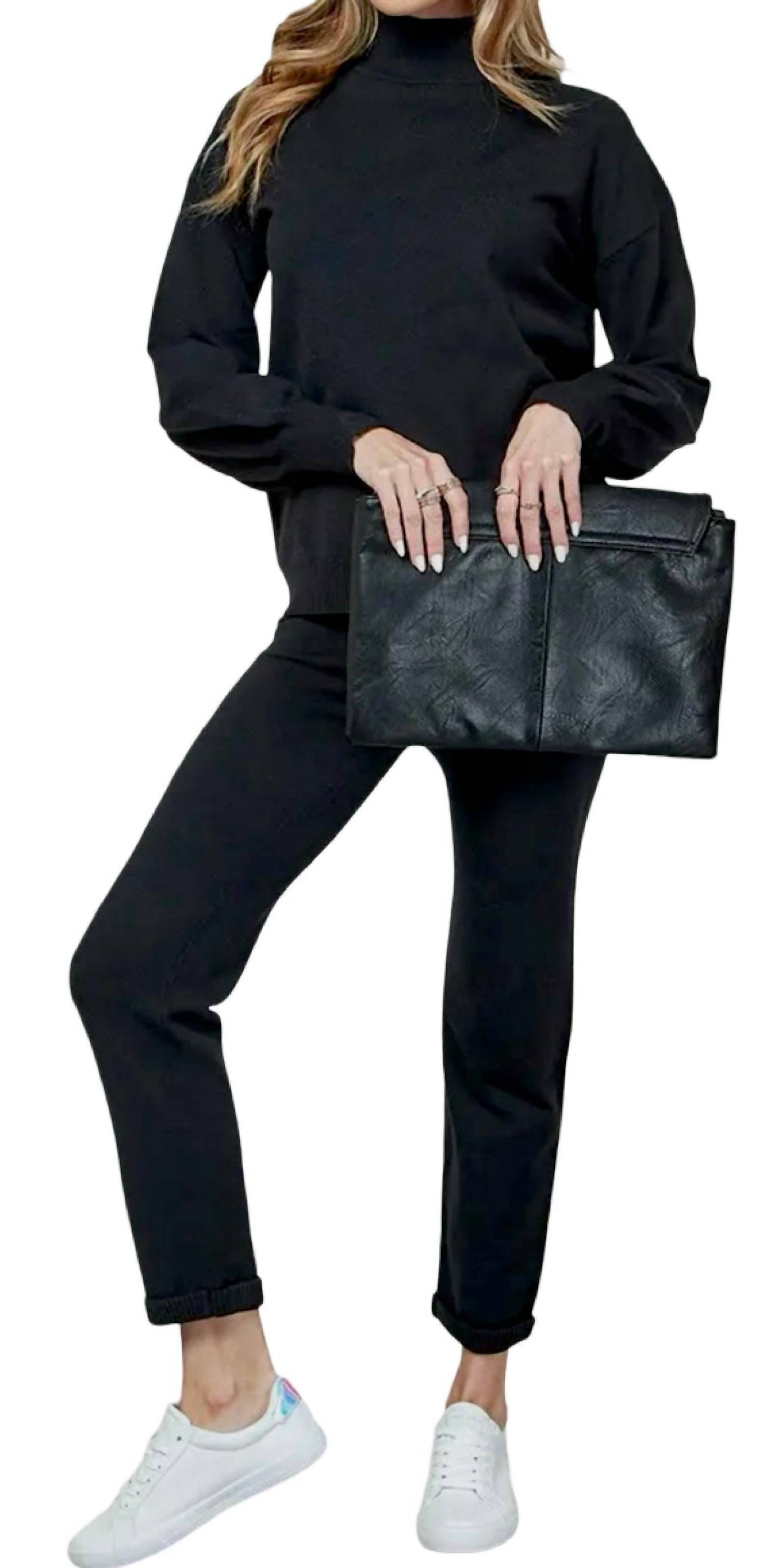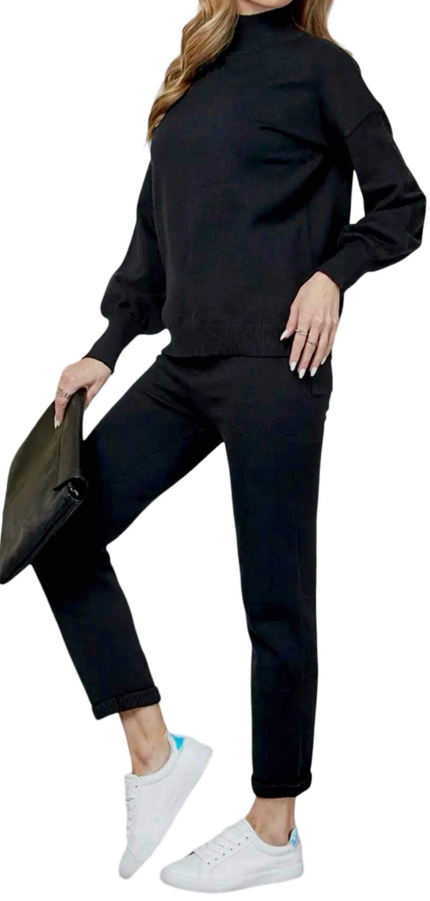 A match made in heaven. This two-piece set is so cute, you'll wish you could wear it out of the house! Did we mention how comfortable it is, too? You may want two sets! Embrace cozy style with the CEZELE Knit Solid Top and Pants Casual Set, perfect for any holiday party. This minimalist black loungewear set features a relaxed knit turtleneck top with long sleeves, paired with matching knit pants for a seamless look. Crafted for the fall season, its classic solid pattern is both comfortable and chic. Originating without specified care instructions, this elegant ensemble is ideal for those seeking effortless sophistication.