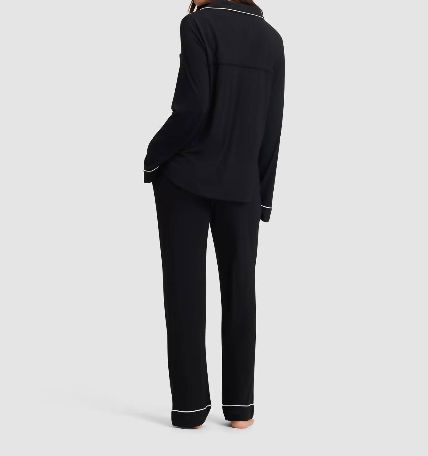 A set so cute you'll never want to take it off. Designed to look good while lounging, this little number is the perfect outfit for hanging at home in style. Relax in style with the Cozy Earth Long Sleep PJ Set in chic black, designed for the ultimate comfort. This loungewear set features long sleeves and a collar neckline crafted from a luxurious viscose blend made of 95% natural bamboo viscose and 5% spandex. The solid pattern and minimalist trend ensure a classic aesthetic, while the eco-friendly fabric naturally resists odors for all-day freshness. Ideal for women who appreciate sustainable, high-quality comfort.