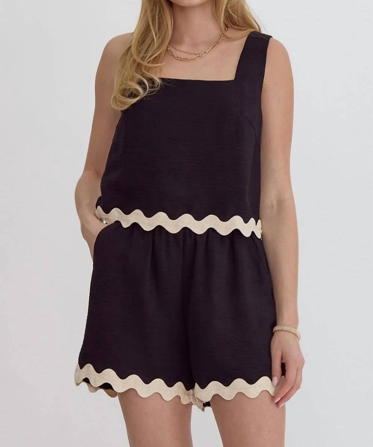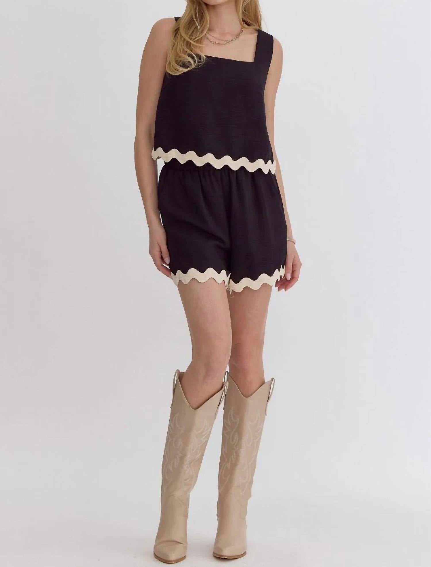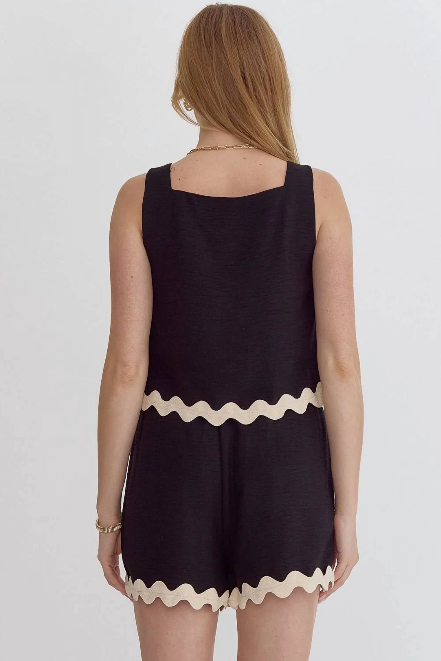 A match made in heaven. This two-piece set is so cute, you'll wish you could wear it out of the house! Did we mention how comfortable it is, too? You may want two sets! Chic two-piece loungewear set in solid black designed for effortless summer style. Crafted from 100% polyester. Features a breezy tank with a flattering square neckline and matching shorts, both enhanced with charming ric rac trim. Shorts provide a perfect fit with a stretchy elastic band and include handy pockets. Machine wash and tumble dry for easy maintenance.
