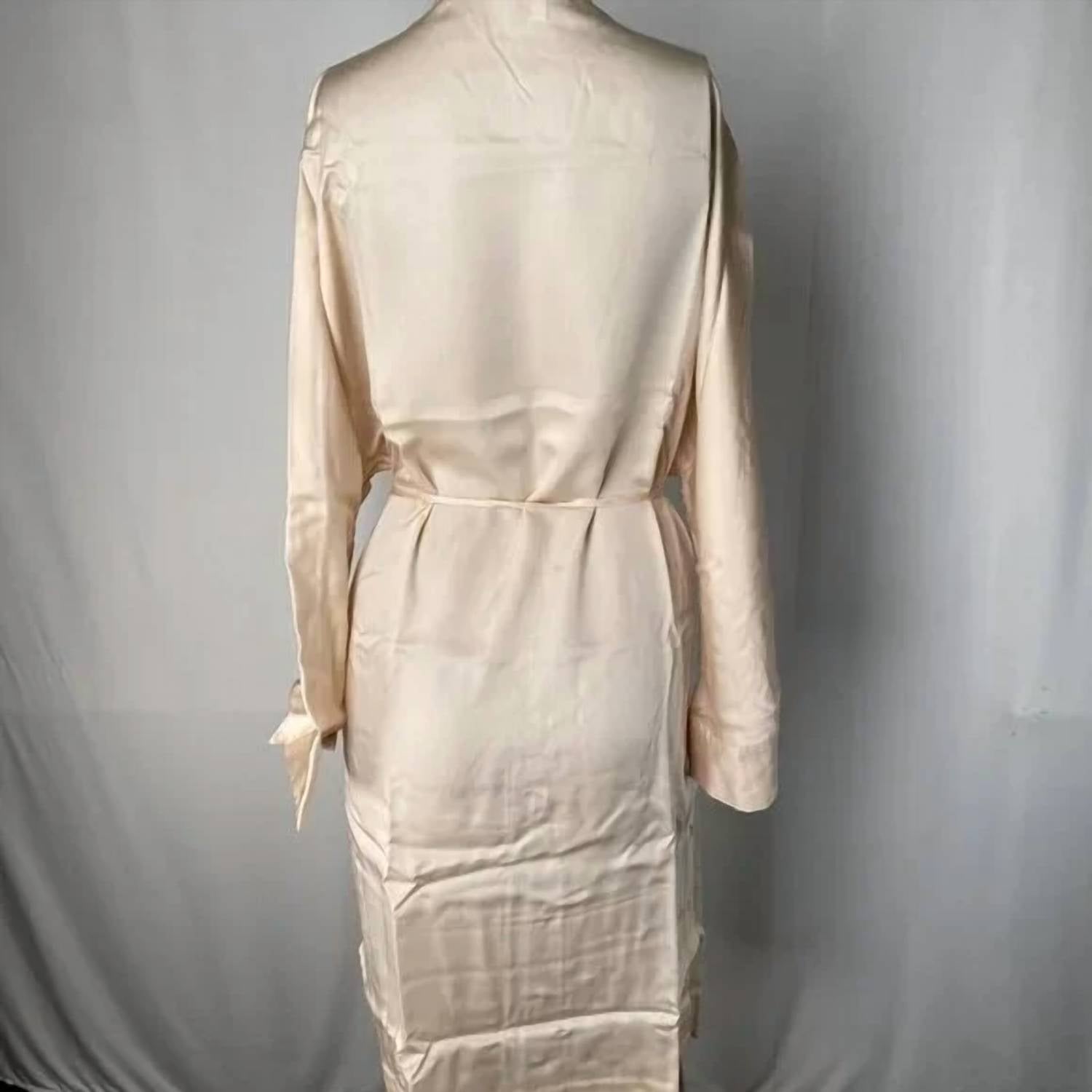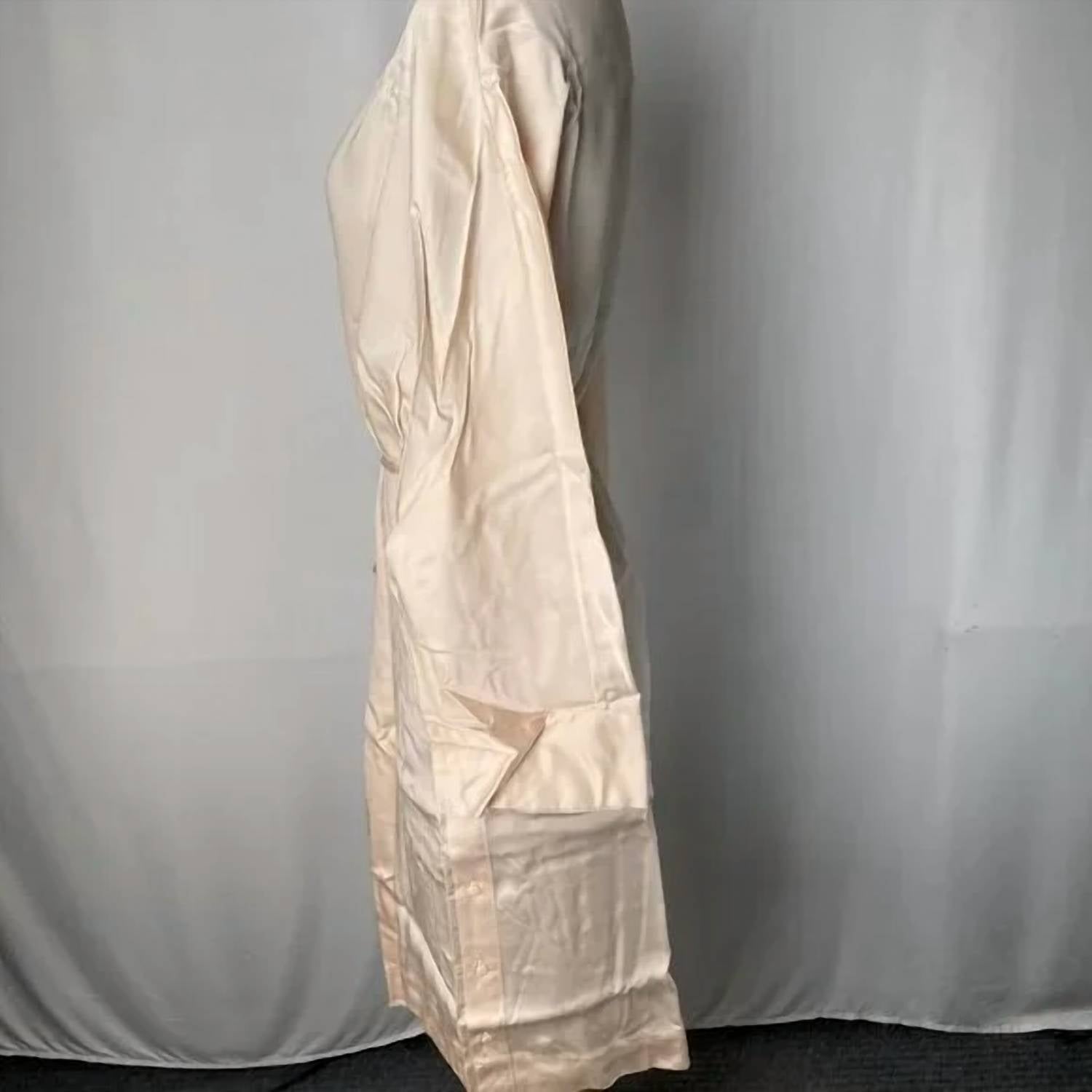 When comfort and style come together seamlessly. Introducing the Women's Long Sleeve Lightweight Sateen Knee-length Robe by Ettitude, a minimalist masterpiece in oat color. This robe is crafted from 100% bamboo lyocell for a sustainable and luxurious feel. Made in China, it features long sleeves and falls to a knee-length, perfect for spring lounging. For care, machine wash and line dry to maintain its softness and durability.
