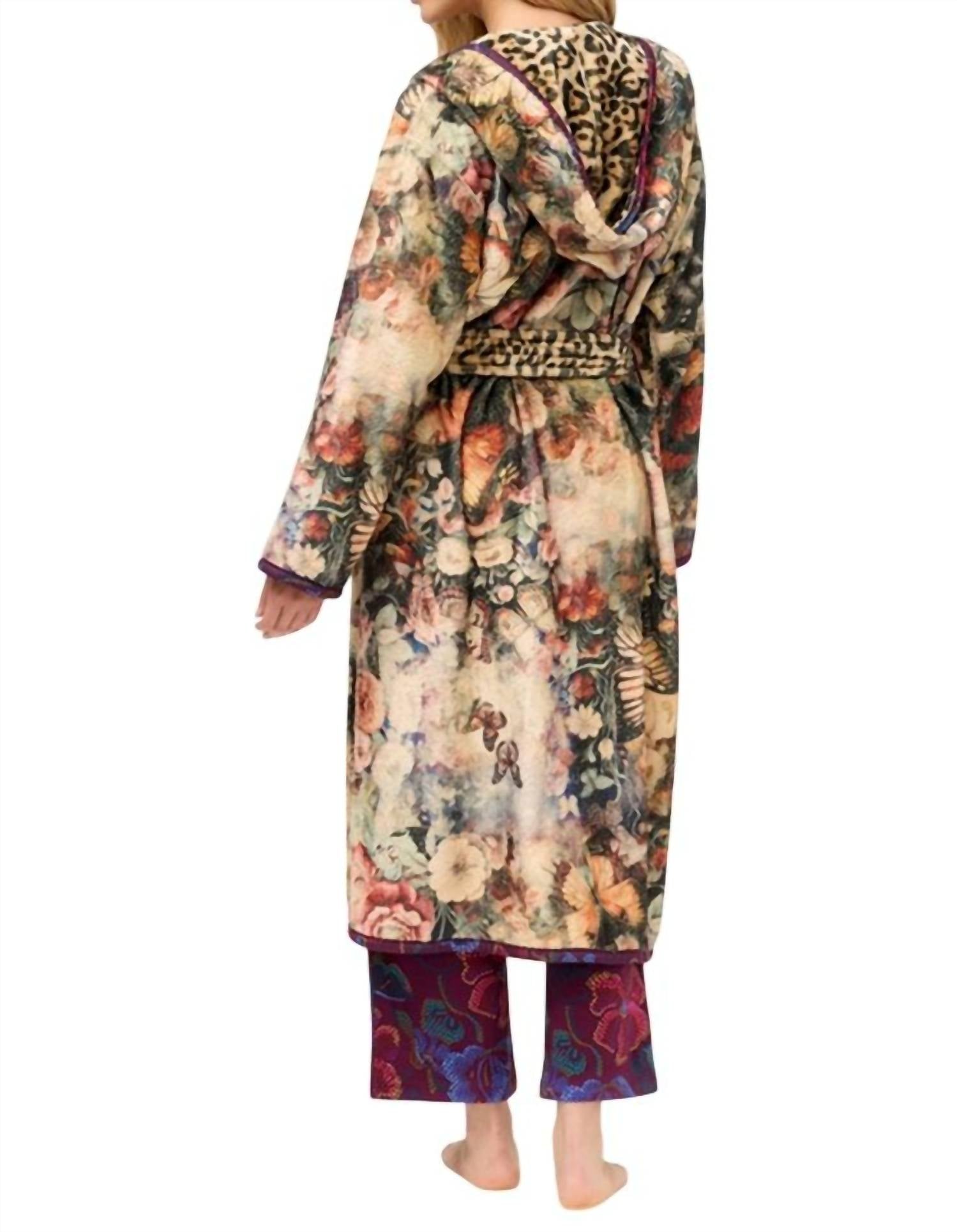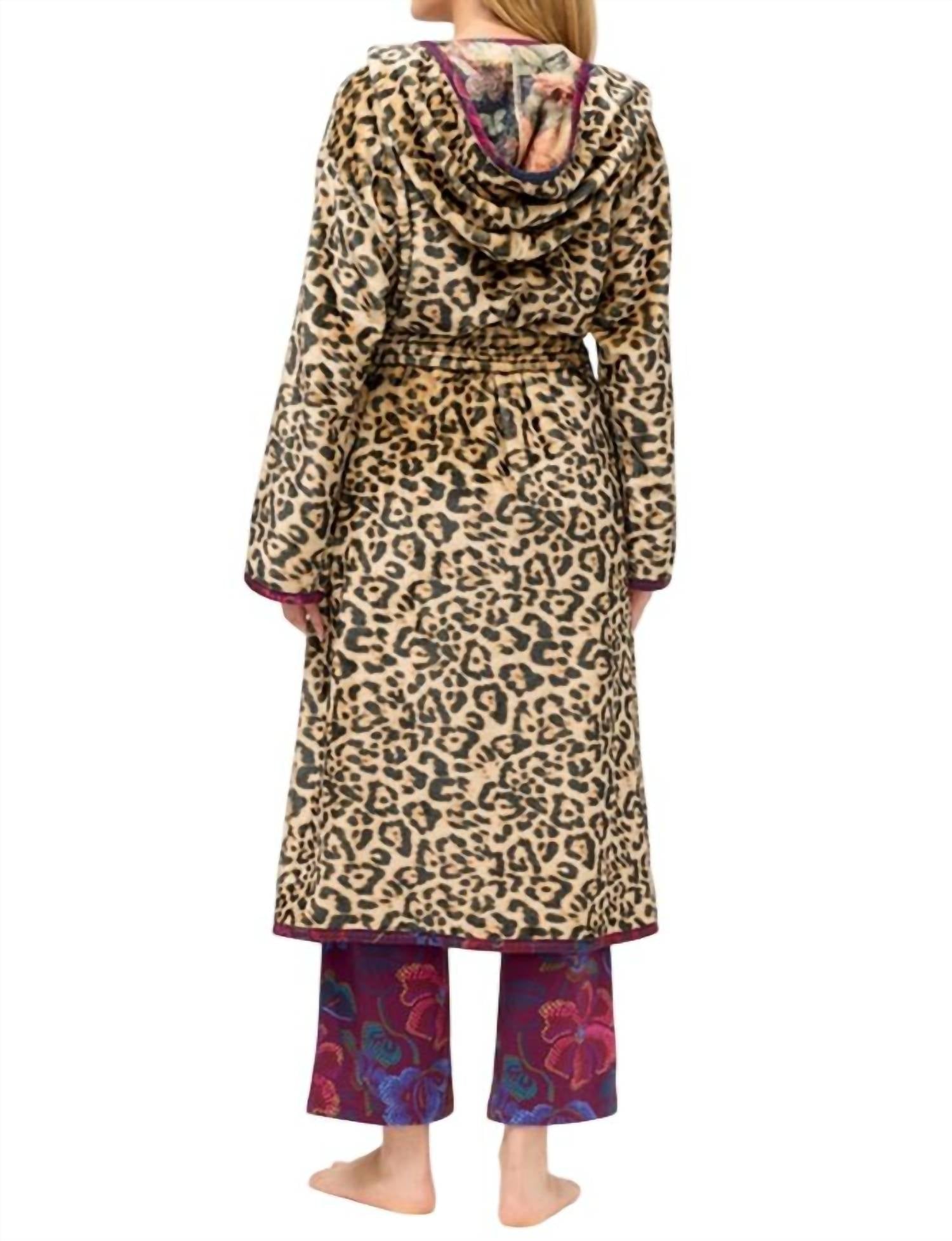 When comfort and style come together seamlessly. Embrace luxurious comfort with the Reversible Aditi Robe by Johnny Was, available in the vibrant Bellina Leopard pattern. This women's long-sleeve robe, made from 100% polyester, features a versatile hooded design with bold leopard print and vivid florals. With its reversible style, it has a comfortable front length of 47 1/2", and includes practical patch pockets and a belt closure. Originating from a trend-setting maximalist style, it’s machine washable and can be tumble dried low, ready for a season of cozy fall evenings or New Year's Eve relaxation. Model stands at 5'9 1/2" wearing size S/M with a bust measurement of 45".