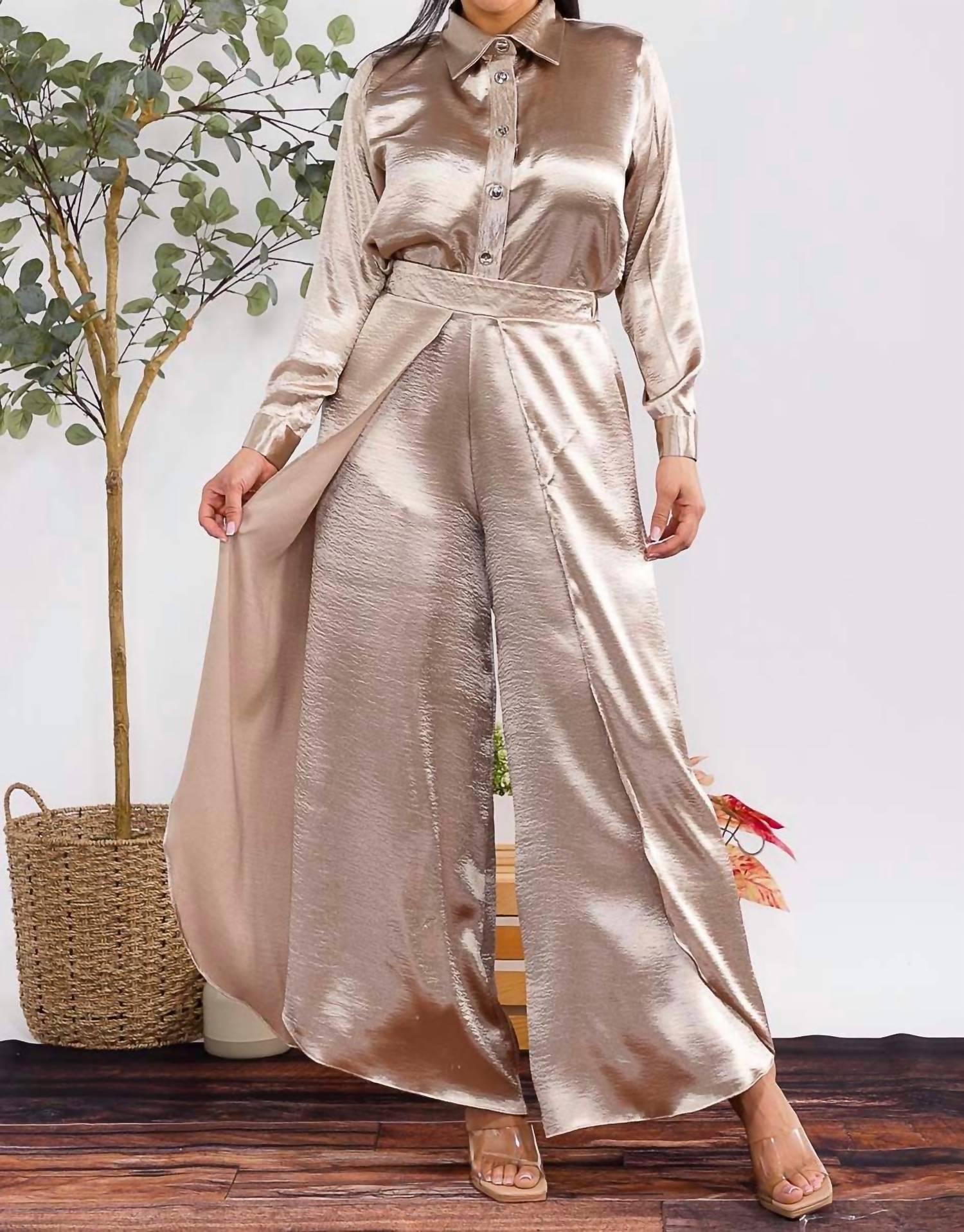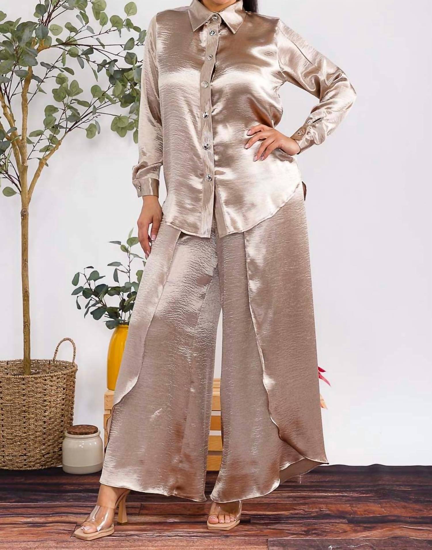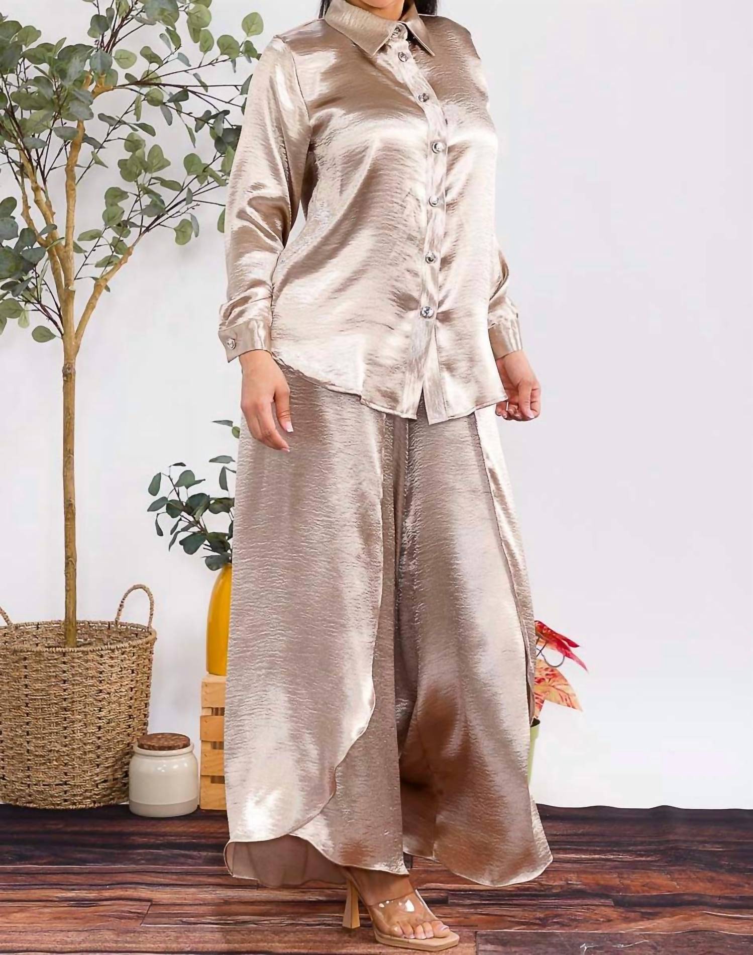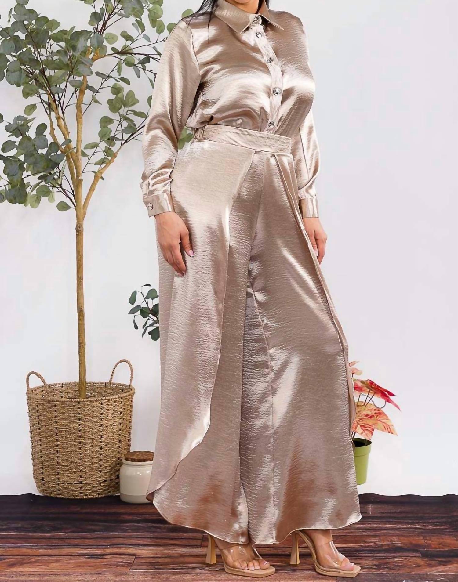Karen T Design - Button Down Shirt And Open Pants Set