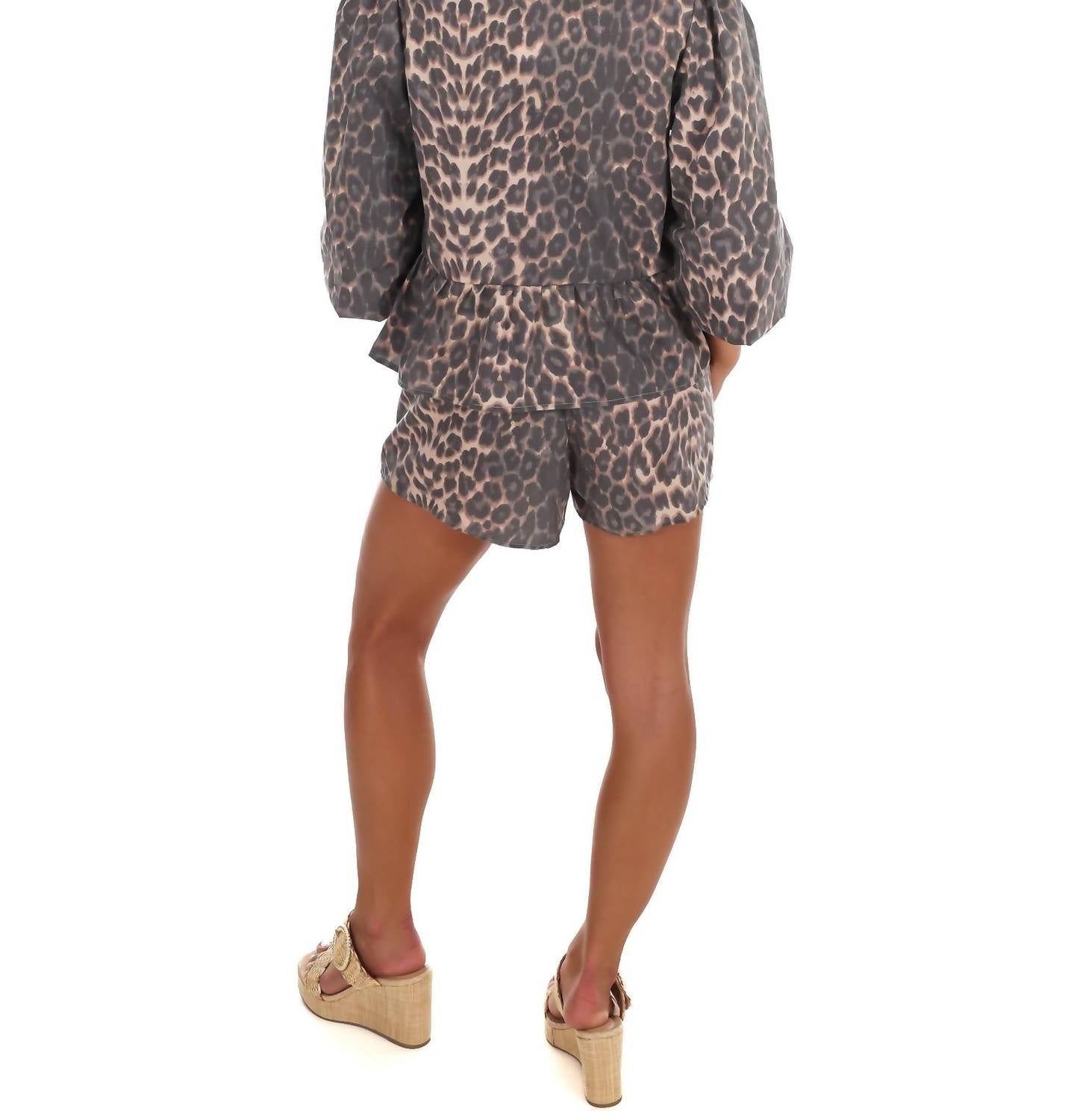 Loungewear doesn't have to be frumpy and this is exactly what we had in mind. Designed for a comfortable fit, this chic little number will be your favorite lounging-at-home look. Discover the Klesis Roam Free Two Piece Set, an embodiment of quiet luxury with its striking leopard print and animal pattern. This stylish women's loungewear set features a cotton blend composition, with a peplum tie shirt characterized by a crewneck and three-quarter sleeves, paired with comfortable shorts. Ideal for both daytime adventures and nighttime outings, this set ensures you stand out confidently. Care for this piece by hand washing it and laying it flat to dry.