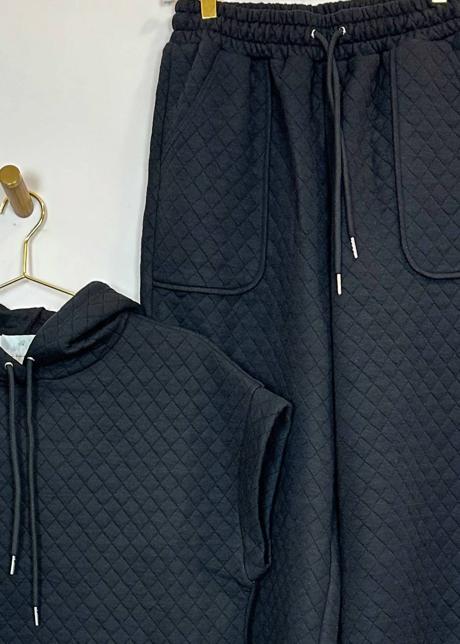 A match made in heaven. This two-piece set is so cute, you'll wish you could wear it out of the house! Did we mention how comfortable it is, too? You may want two sets! Introducing the Women's Let's Get Away Set by Lovely Melody, designed for effortless style and comfort. This versatile 2-piece set features a short-sleeve, oversized fit in classic black, perfect for a laid-back yet chic holiday look. With a composition of 98% Polyester and 2% Spandex, it offers a soft and flexible feel. Make your next flight or holiday party memorable with this quintessential loungewear staple.