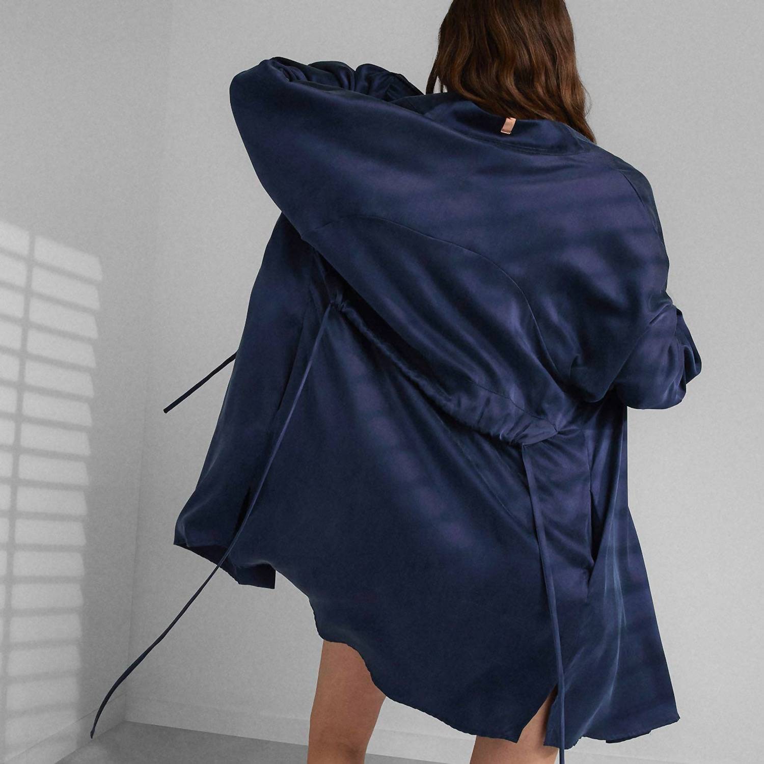 Pair with cozy slippers for loungewear perfection. Indulge in ultimate comfort with the Lunya Washable Silk Short Robe in Deep Blue, perfect for relaxed evenings at home. This luxurious robe features long sleeves and a sophisticated V-neckline, offering a touch of quiet luxury tailored for your summer nights. Skillfully crafted from 100% mulberry silk and made in China, it balances elegance with ease. Care is simple: machine wash and line dry, ensuring this robe remains effortlessly stylish and low maintenance.