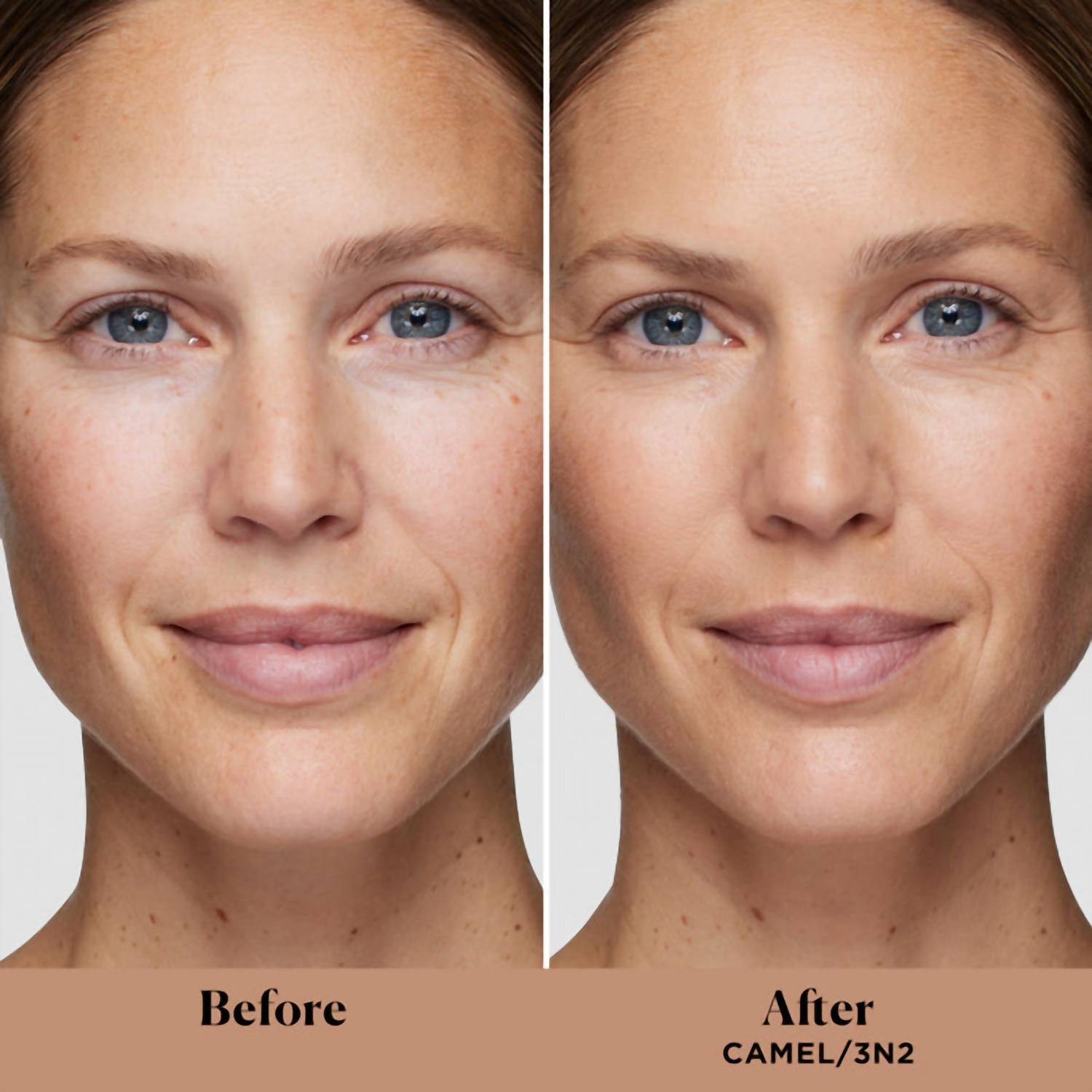 Introducing the Laura Mercier Real Flawless Weightless Perfecting Waterproof Foundation in 3N2 Camel. This liquid foundation offers a skin-loving formula with medium buildable coverage that feels utterly weightless. Suitable for all skin types, it blurs imperfections and improves skin tone, while offering long-wearing, oil-controlling, and hydrating benefits for up to 24 hours. Dermatologist-tested, vegan, fragrance-free, and non-comedogenic, this foundation comes in a convenient 30ml (1.0 fl oz) size.
