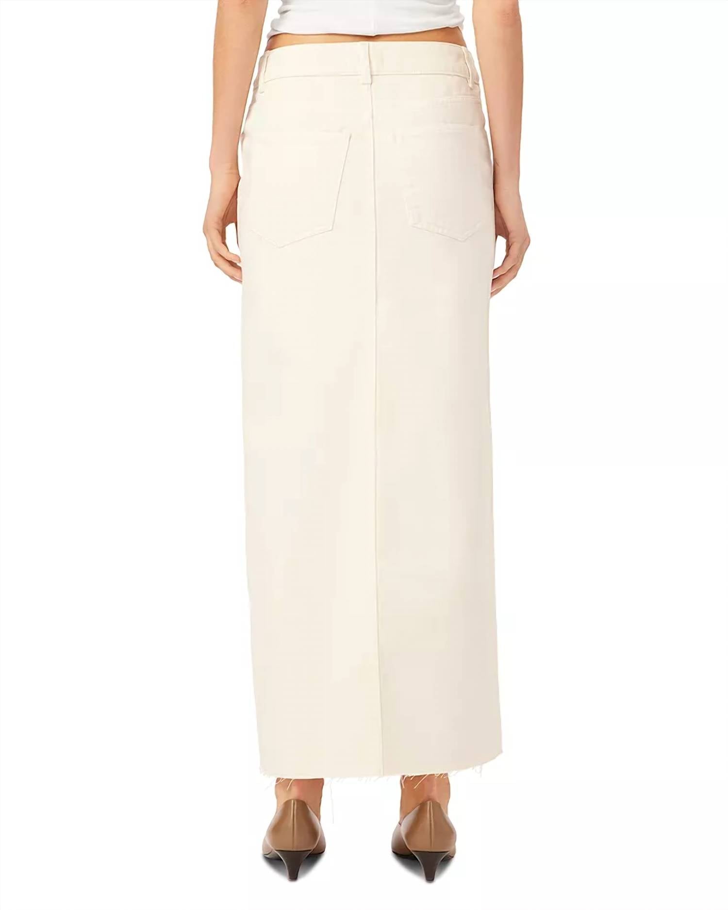 Flowy, comortable and stylish. This maxi skirt is a fan favorite. Meet the Asra Denim Maxi Skirt by DL1961 - Women's, designed to elevate your spring vacation wardrobe with a streetwear flair. Crafted from 99% Recycled Organic Cotton/1% Lycra Spandex, this skirt in solid ecru features a flattering fit that sits at your natural waist, complete with functional pockets. The skirt is detailed with a matte silver shank, matte copper rivets, and tonal stitching, accentuated by a clean hem and an ecru back patch. Closure: Button closure. Care: Machine wash.