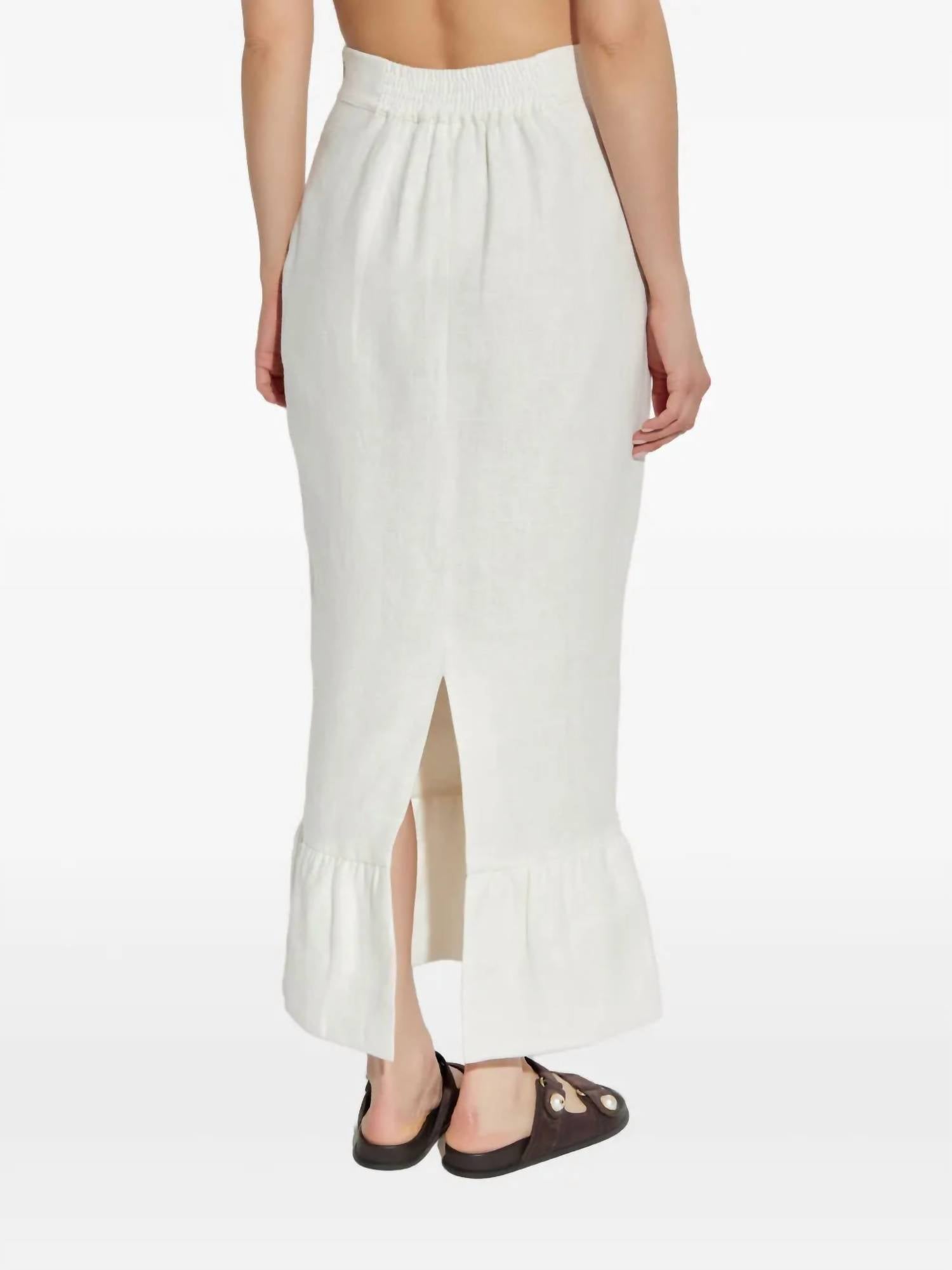 Who doesn't love a good maxi skirt? Introducing the Matilda Column Skirt by POSSE, a stylish choice for a dinner party or Thanksgiving gathering. This women's maxi skirt, crafted from 100% premium linen, offers a sleek solid pattern in a tasteful cream color. Designed with a pull-on closure for ease, it features a high-rise waist and a subtle split for graceful movement. Originating from Posse’s Spring collection, this piece embodies quiet luxury and is imported with care instructions to machine wash and lay flat to dry.