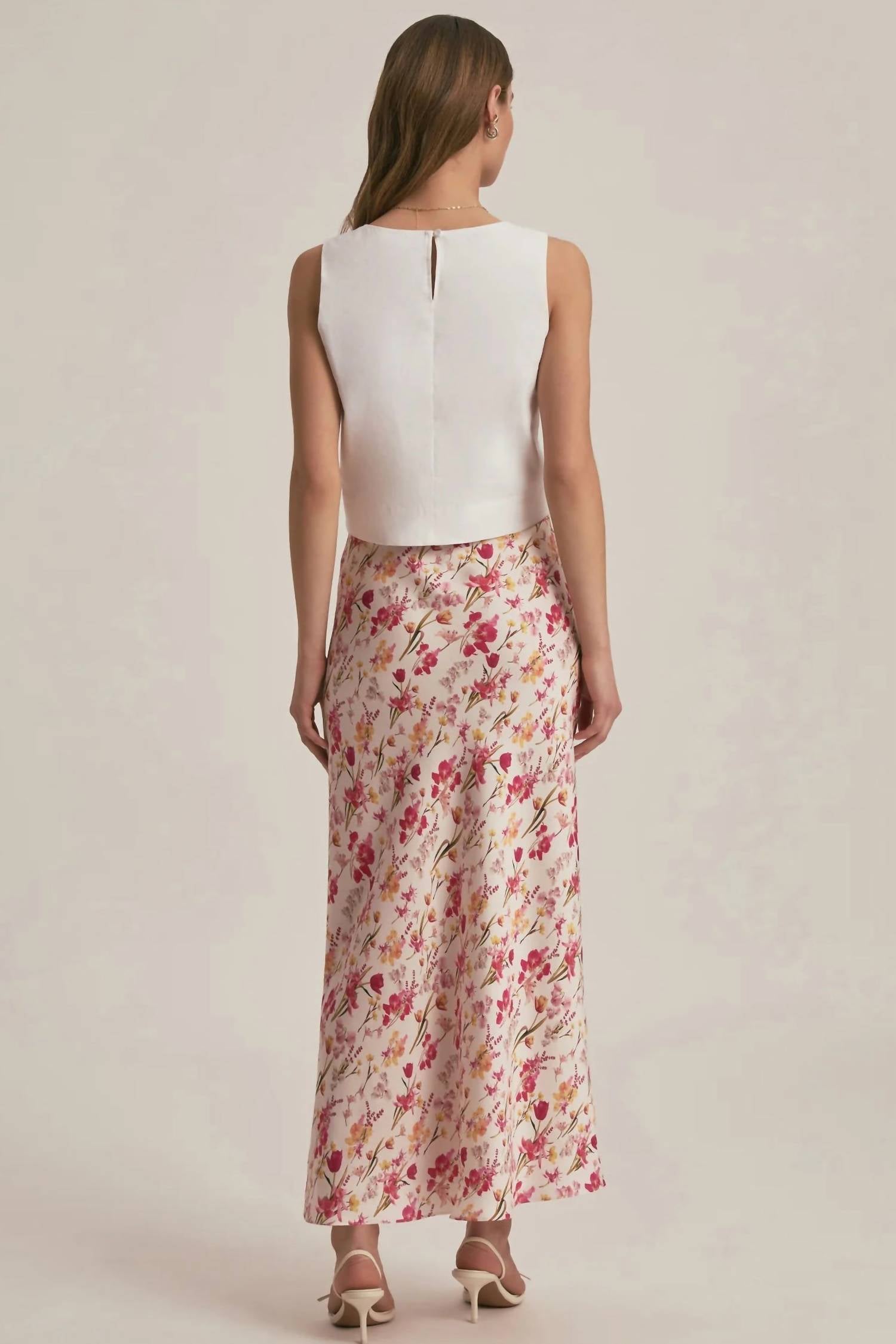 Who doesn't love a good maxi skirt? Elevate your wardrobe with the Favorite Daughter Silky Satin Maxi Skirt, boasting a vibrant Summer Bouquet floral print. This boho-chic design features a bias-cut and measures 34.5 inches in length, offering a flattering silhouette for any occasion, from summer outings to special anniversaries. Crafted from 100% polyester, both self and lining, it promises comfort and elegance with an elastic waistband for easy pull-on wear. For care, simply machine wash to maintain its lively appeal.
