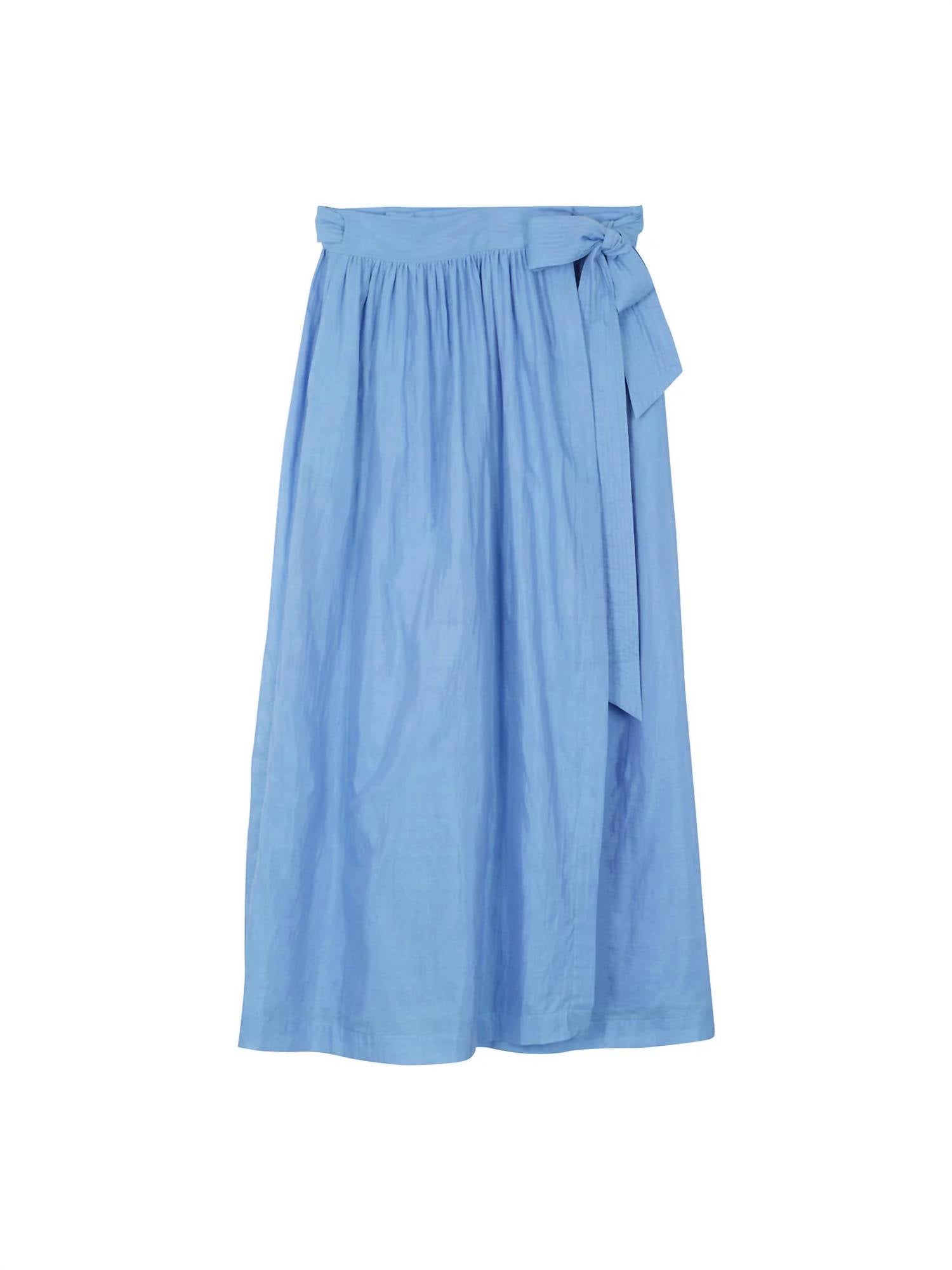 Flowy, comortable and stylish. This maxi skirt is a fan favorite. Introducing the Marie Agnes Skirt by Mii Collection, a maxi skirt hand-woven with precision from luxurious silk cotton. This chic piece in Myosotis color showcases an exquisite blend of black and colored threads for an iridescent and golden effect. Closure: Tie closure with convenient pockets. Perfect for a boho chic summer vacation wardrobe.