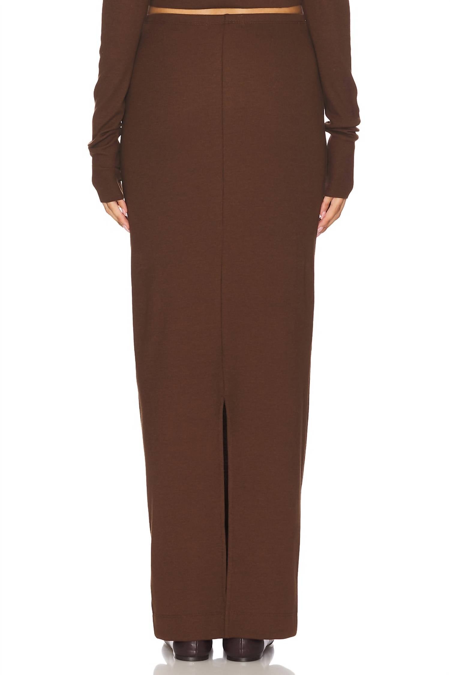 Who doesn't love a good maxi skirt? Experience the timeless elegance of ÉTERNE's Emma Skirt, tailored to provide a flattering slim fit in a rich chocolate hue. This maxi-length skirt is expertly crafted from an Italian matte stretch jersey, allowing you to transition seamlessly from day to night with style and comfort. With a straightforward pull-on closure and composed of a luxurious viscose blend, it personifies quiet luxury for any evening event. Care for this versatile essential with dry cleaning to maintain its pristine appearance.