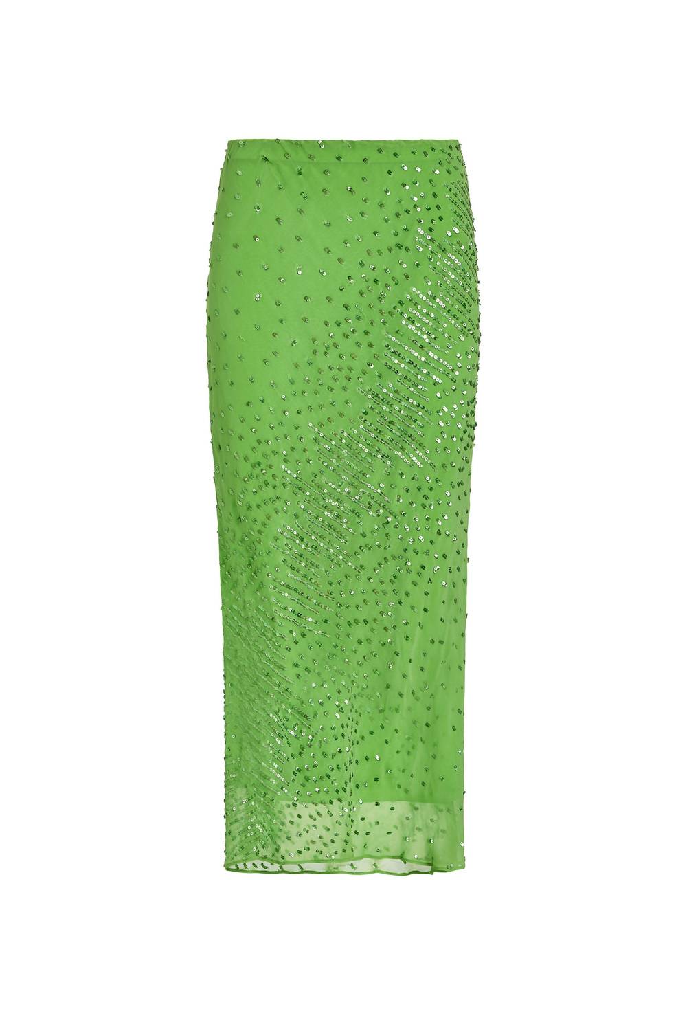 Tuck in your favorite tee for a more casual yet feminine look. Introducing the Noella Maxi Skirt by Amanda Uprichard, a statement piece perfect for an evening out. This women’s skirt features an elastic waist and side zipper for ease and comfort, and it shines with an eye-catching, textured sequin pattern. Made from 100% Rayon, it is fully lined to ensure a graceful drape. Care: Dry clean only. Ideal for quiet luxury occasions like dinner parties or spring celebrations.