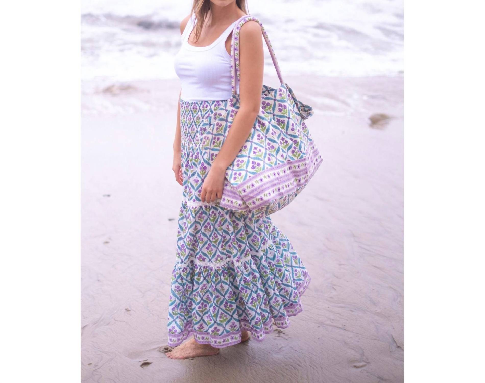 Tuck in your favorite tee for a more casual yet feminine look. Introducing the Mandy Maxi Skirt by Bell by Alicia Bell, a striking choice in Turquoise Purple Diamond. Crafted from a luxurious silk cotton voile, this Cotton Blend piece showcases a captivating floral pattern. Designed for ease of wear, it features a pull-on closure, complemented by its maxi length for an elegant silhouette. Dry clean only. 80% cotton/20% silk.