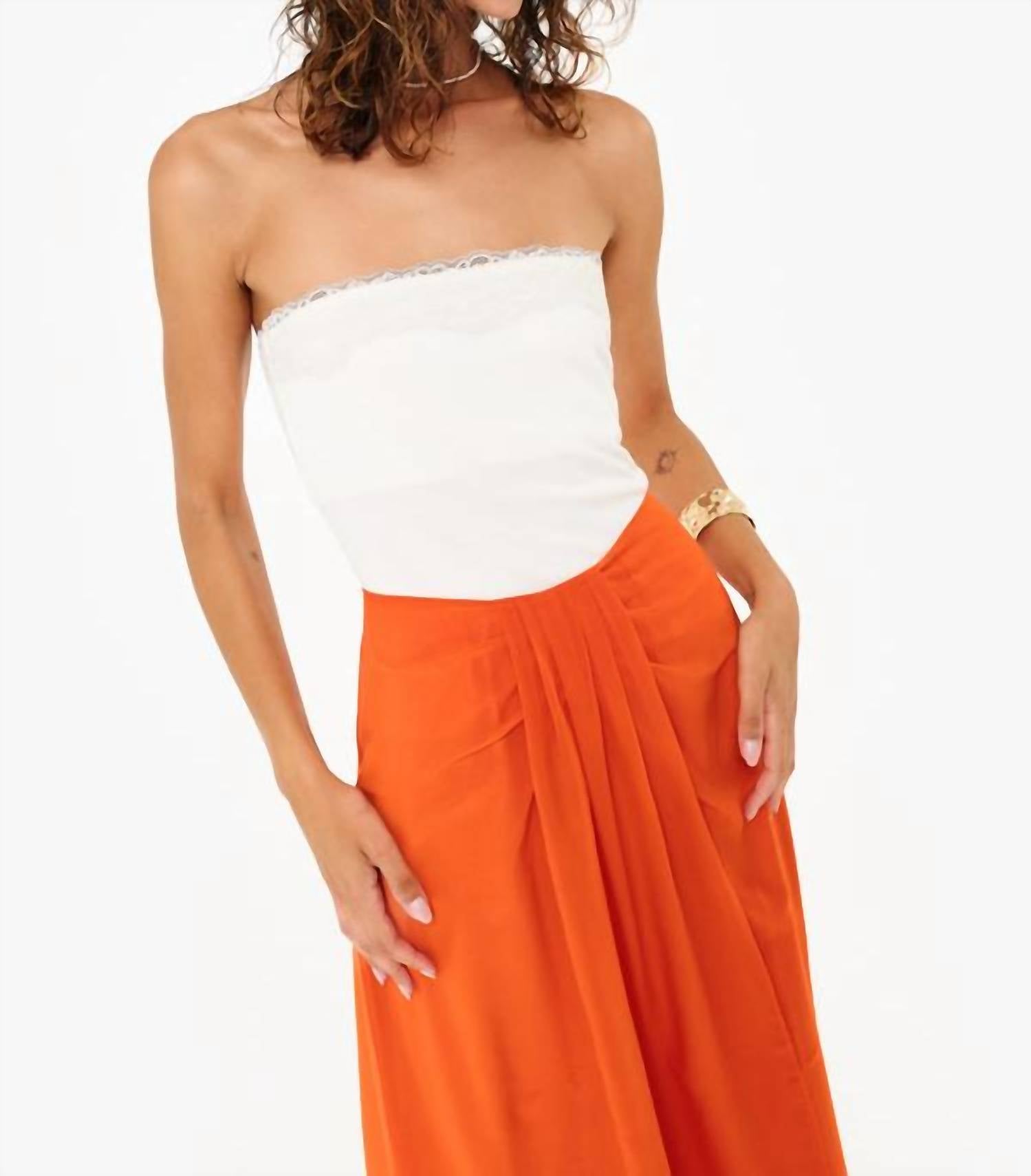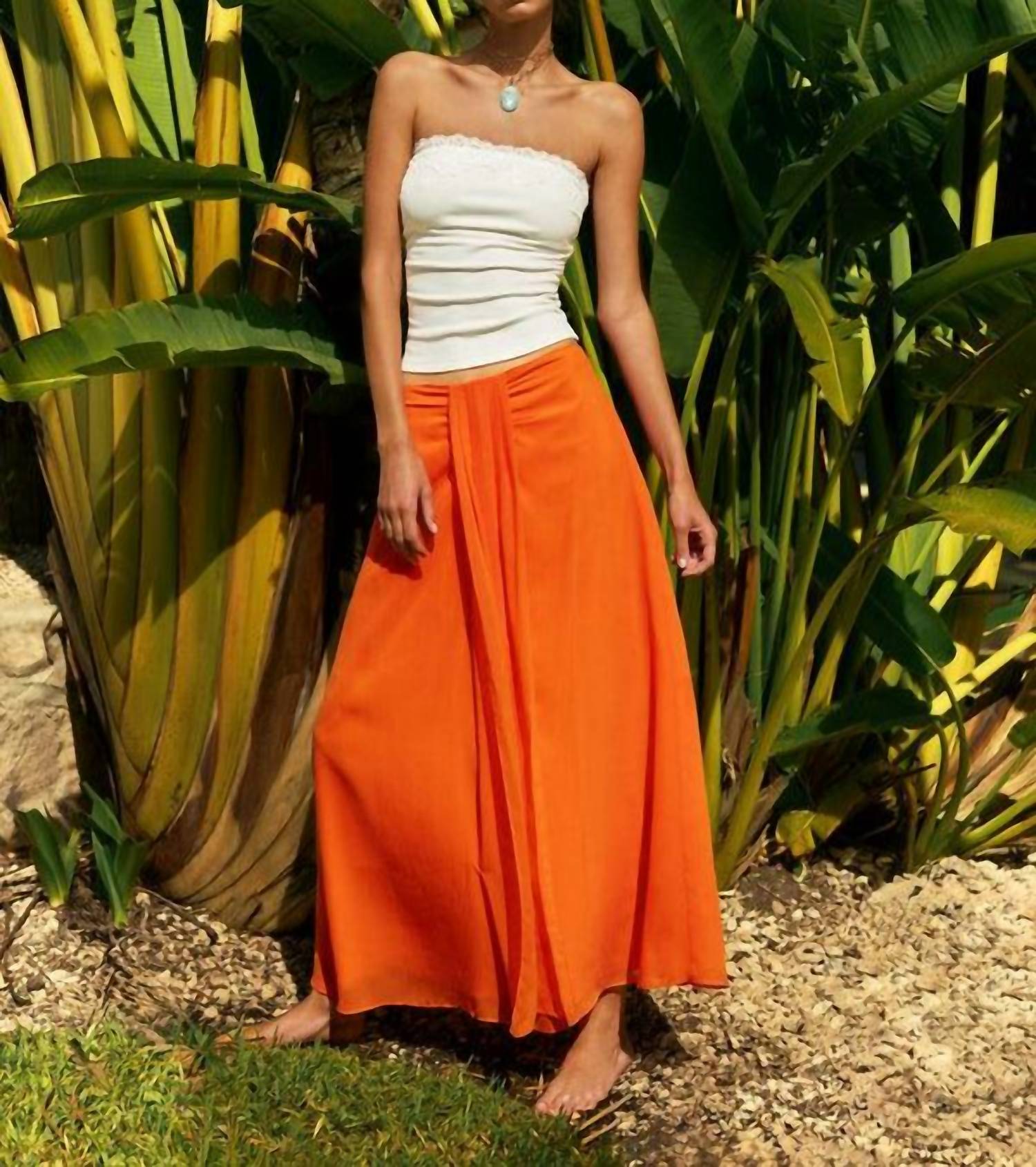 Flowy, comortable and stylish. This maxi skirt is a fan favorite. This mid-rise maxi skirt features an angled waist with a front panel that creates the look of a chic sarong wrap. Designed with a center-back invisible zipper and hook-and-eye closure, it offers a smooth, secure fit. Fully lined for comfort and coverage, this silhouette delivers effortless elegance with a modern, flattering twist.