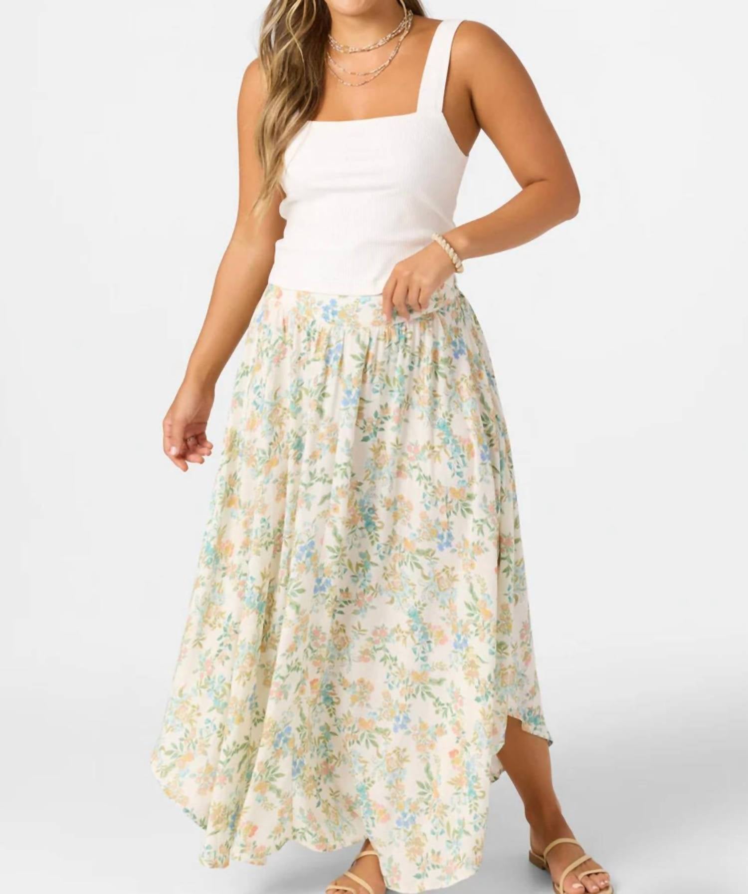 Flowy, comortable and stylish. This maxi skirt is a fan favorite. Elevate your spring wardrobe with the O'NEILL Marnie Naomi Floral Skirt in Winter White, designed for those seeking effortless style and comfort. This women's woven midi skirt features an allover floral print, a saddle hem, and a flowy fit, perfect for any vacation occasion. Crafted from 100% Viscose Slub, it offers a convenient pull-on design with an elastic back waist for easy wear. At 35 inches in center front length, it's the ideal maximalist piece for your next holiday adventure. Care: Dry clean only.