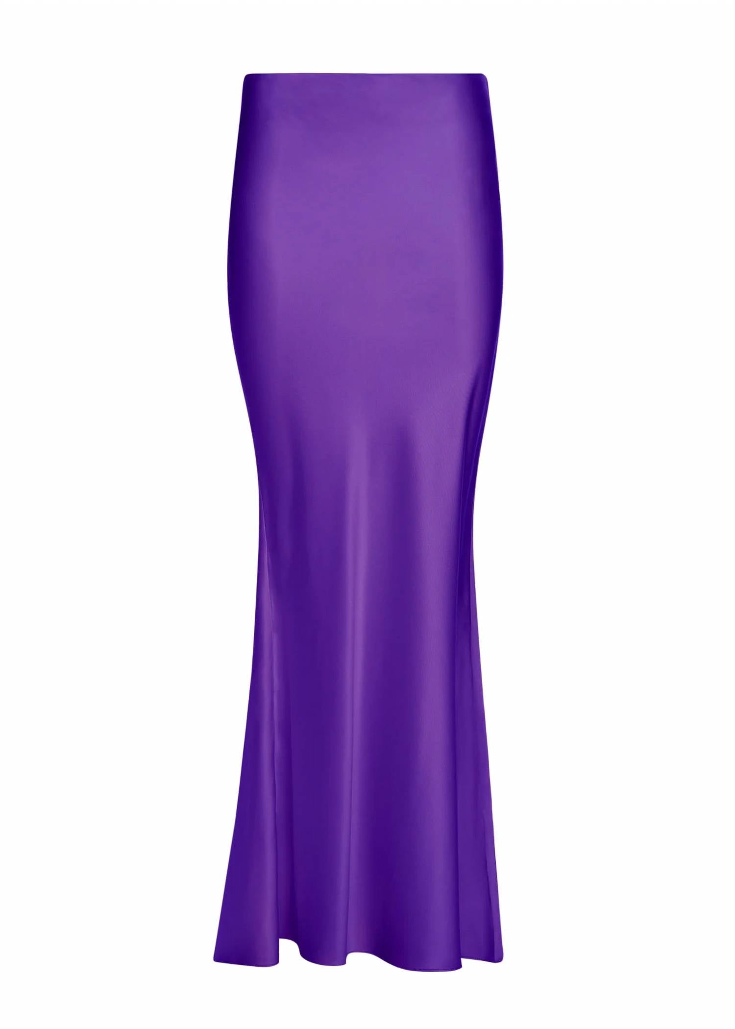 Who doesn't love a good maxi skirt? Introducing the Silvana Silk Maxi Skirt by SER.O.YA, a stunning piece in Violet Indigo perfect for a minimalist touch to your spring dinner parties. This low-rise skirt features a waist cutout with a signature silver emblem and offers a long, elegant drape at 42 inches in length. Made in China with a delicate composition of 95% Silk and 5% Spandex, the skirt is unlined with a hidden side zipper closure. Care instructions recommend dry cleaning to maintain its luxurious satin finish and vibrant color.