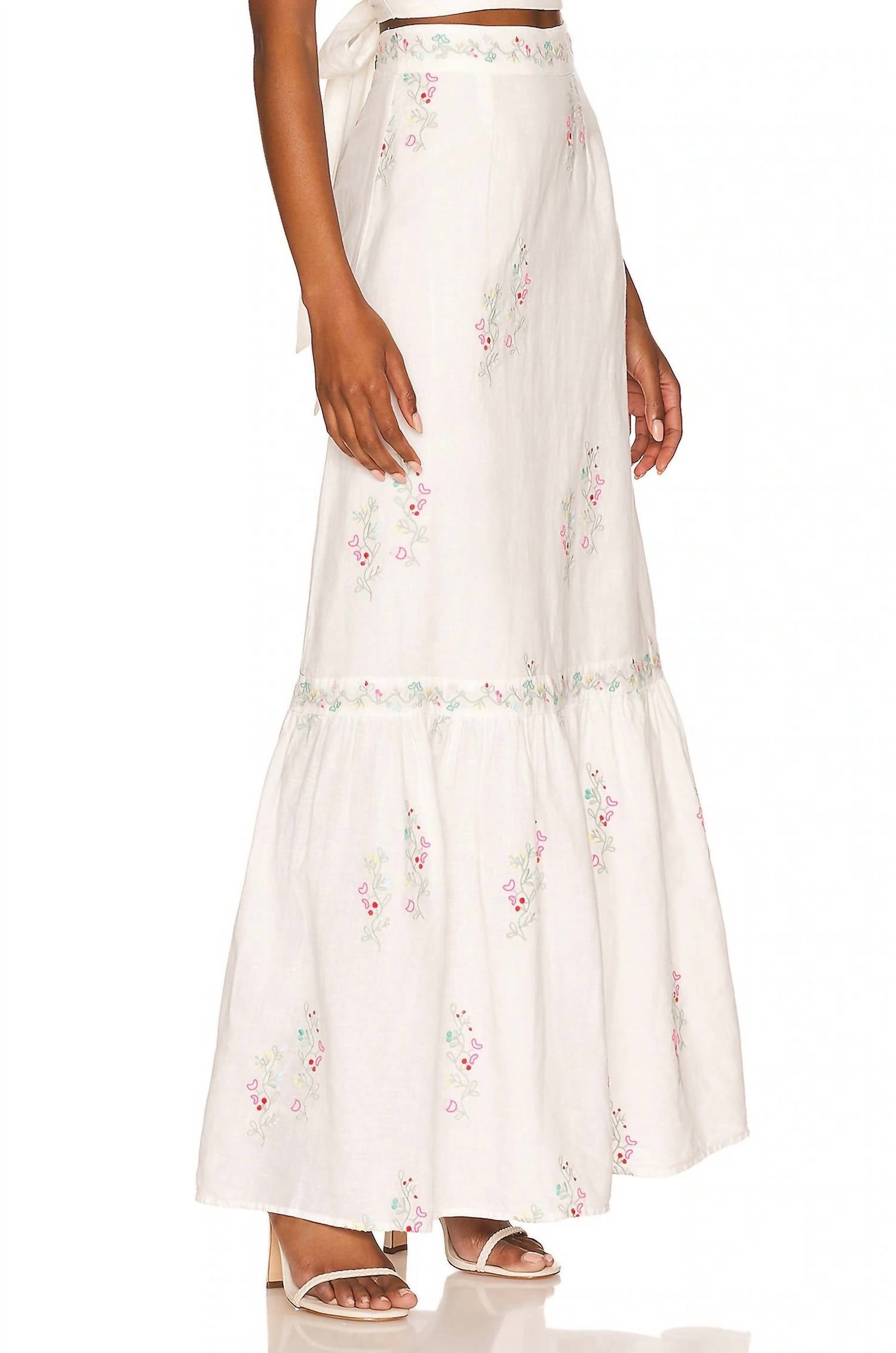 Flowy, comortable and stylish. This maxi skirt is a fan favorite. Unveil boho chic style with the Embroidered Tiered Maxi Skirt by SOMETHING NAVY, flaunting an all-over floral embroidery in a pastel palette. This women’s skirt seamlessly combines 60% linen and 40% cotton, featuring a ruffled hem for added flair. Made in India, it offers easy pull-on wear complemented by a concealed back zipper and hook and loop closure. For care, simply machine wash and lay flat to dry for a long-lasting statement piece perfect for summer vacations.