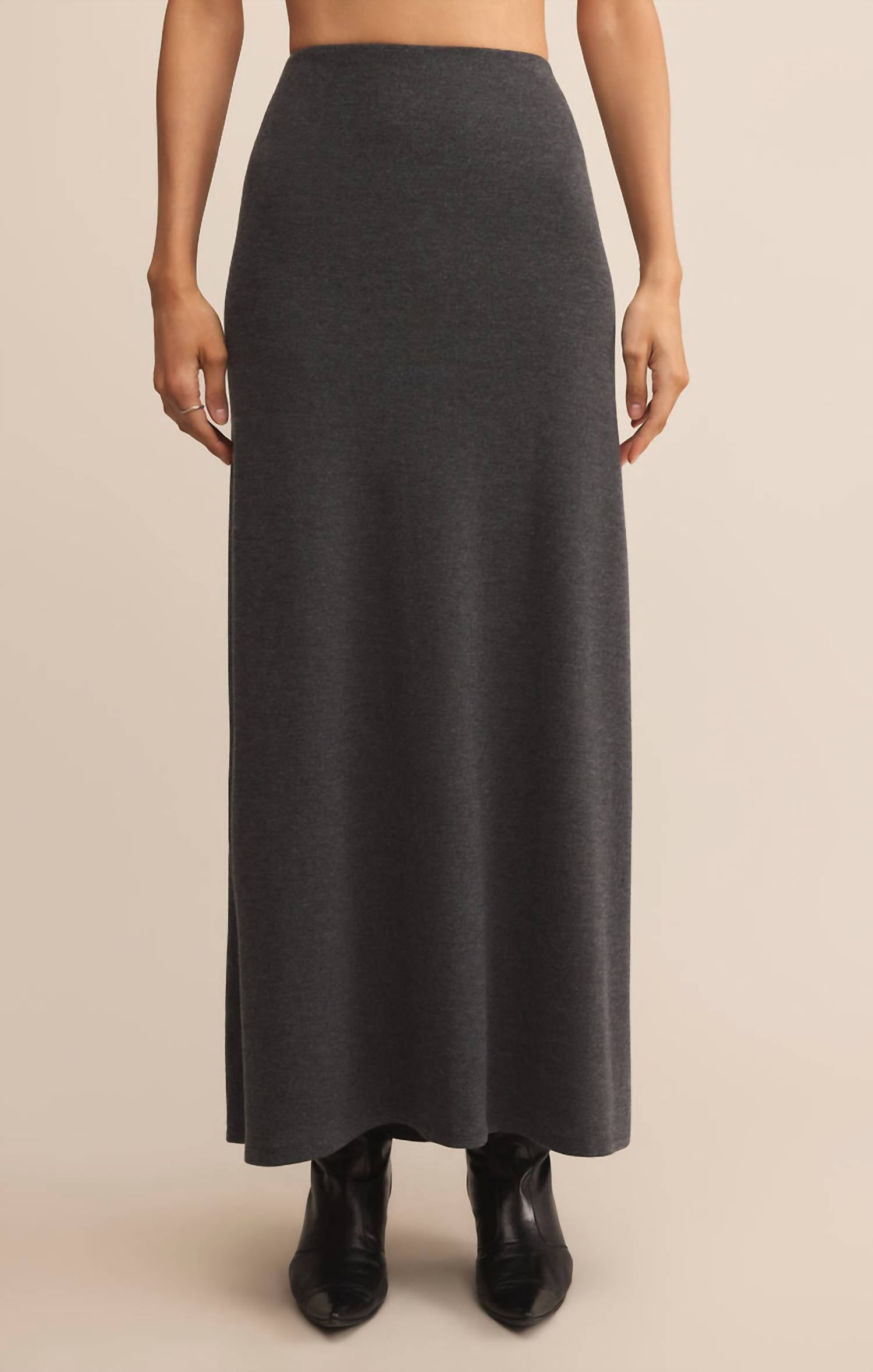 Flowy, comortable and stylish. This maxi skirt is a fan favorite. Embrace timeless elegance with the Demure Maxi Skirt by Z Supply, a chic addition to your wardrobe in Charcoal Heather. This women's skirt features a flowy silhouette with a 36.5-inch maxi length and high-rise elastic waistband for comfortable wear. Crafted from brushed jersey composed of 47% Polyester, 47% Rayon, and 6% Spandex, it offers a lightweight feel with a heavy soft wash finish. Care for this sophisticated piece with a machine wash on cold and lay flat to dry, perfect for your fall evening outings.