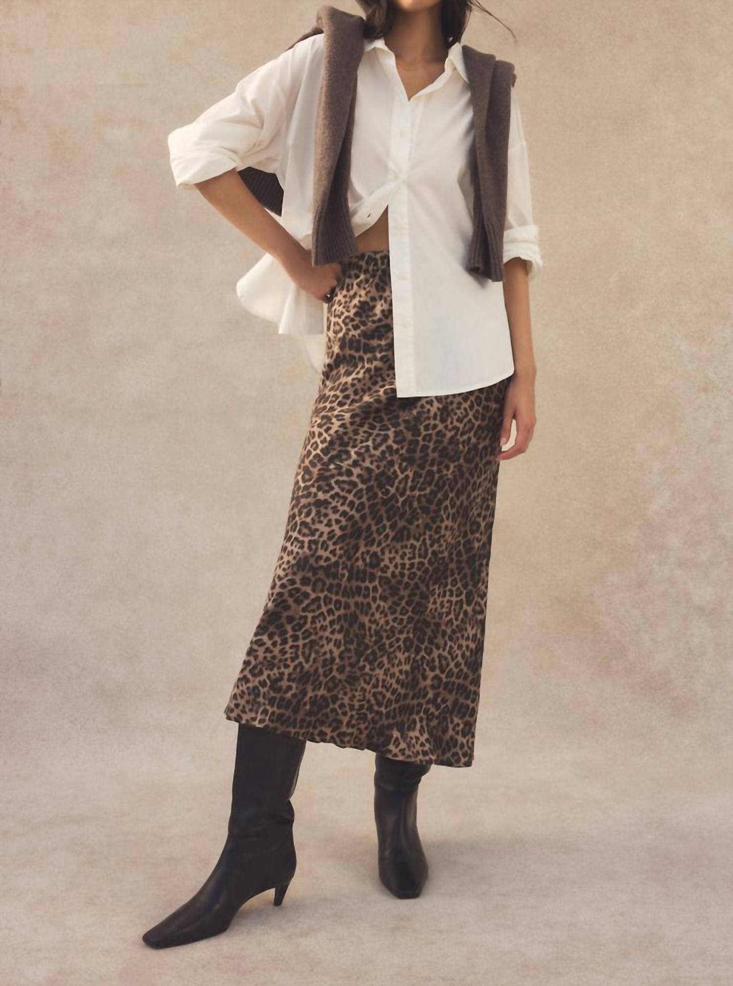 Tuck in your favorite tee for a more casual yet feminine look. Introducing the Izabel Leopard Maxi Skirt by Z Supply, a boho chic staple in Desert Tan designed for elegant spring occasions. This high-rise skirt boasts a luxurious stretch satin composition of 97% Rayon and 3% Spandex with a flattering bias cut and maxi length. Enjoy the ease of a pull-on closure with its elastic waistband, perfect for comfortable holiday gatherings. Care for this piece by hand washing cold and laying flat to dry or opt for dry cleaning to maintain its subtle shine.