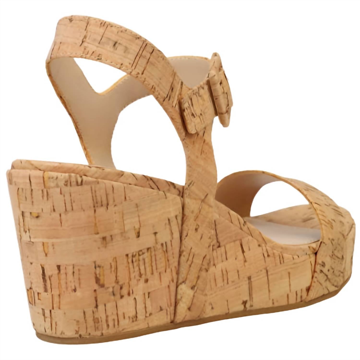 This sandal will take you from brunch to dinner and everything in between. The Pelle Moda Women's Wiltz Wedge Sandals are a stylish addition to any wardrobe, perfect for holiday parties and boho chic trends. These wedges, crafted in natural cork, feature an adjustable buckle closure for a customized fit. The design boasts a mid wedge heel height of 3.14 inches and a 1.10-inch platform, complemented by a durable synthetic lining and rubber outsole. Ideal for the spring season and events like Thanksgiving, these open-toe sandals offer both comfort and standout style.