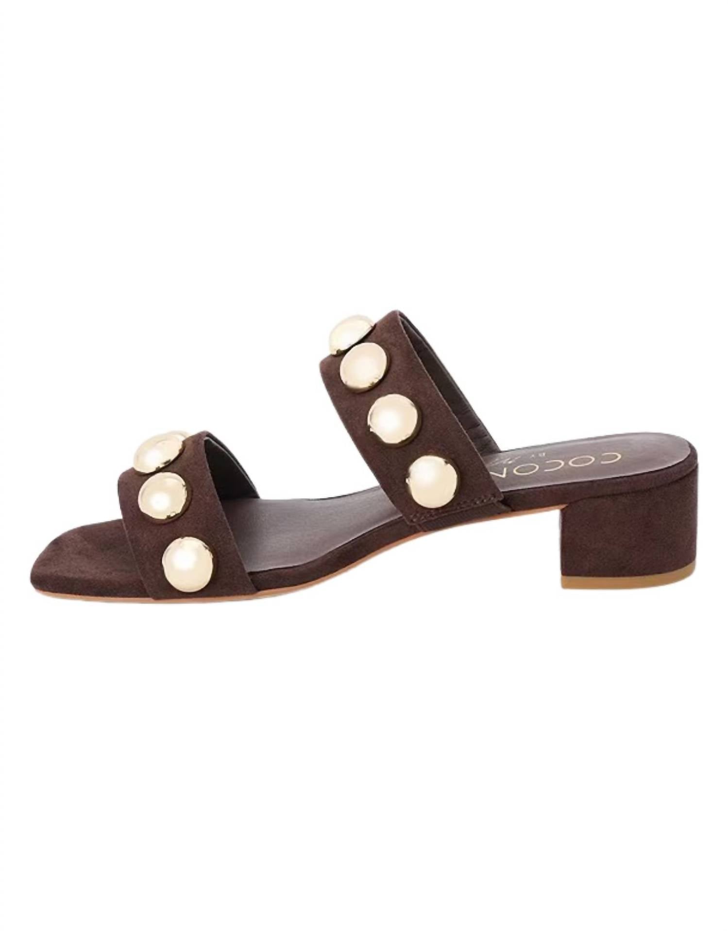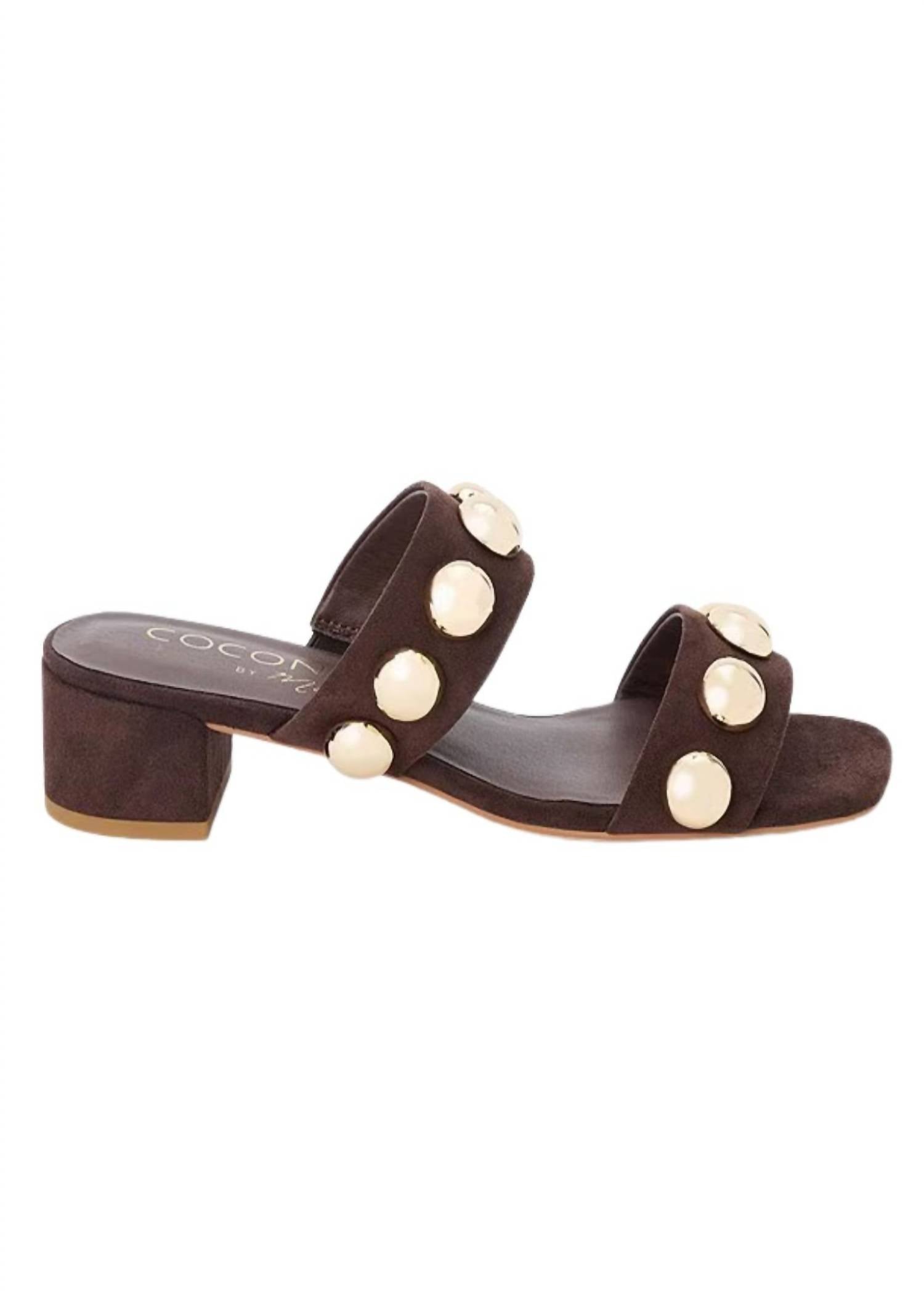 Classicly cute and all-day-wearable. We love this sandal. Step into elegance with the Women's Venus Studded Sandal by Coconuts by Matisse, perfect for your summer occasions. Crafted with a soft suede upper in a rich Coffee hue, these sandals feature dome ornament-embellished straps that add a chic touch to any outfit. The slip-on design is enhanced by a padded insole and synthetic lining, ensuring all-day comfort, and is set on a reliable synthetic outsole. With a 1.75" block heel, these sandals provide a subtle lift, making them an ideal pick for holiday parties or any warm-weather gathering.