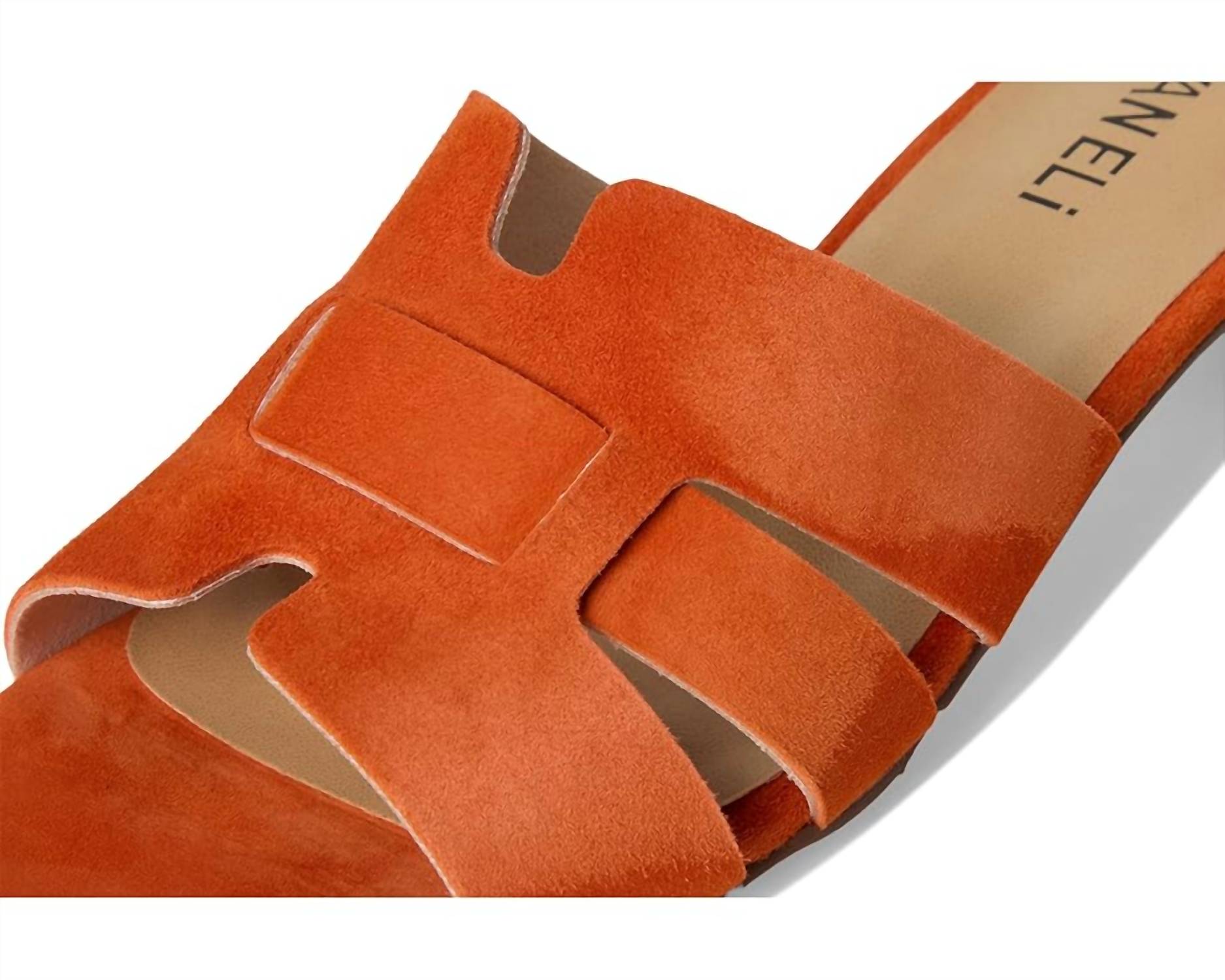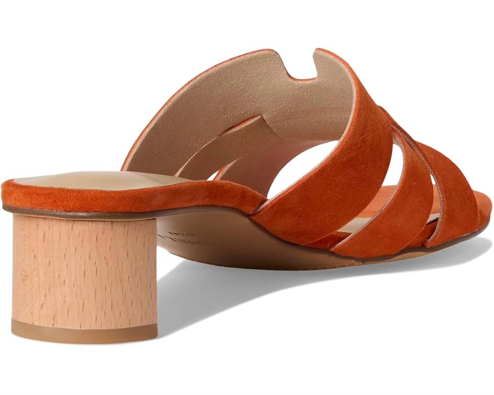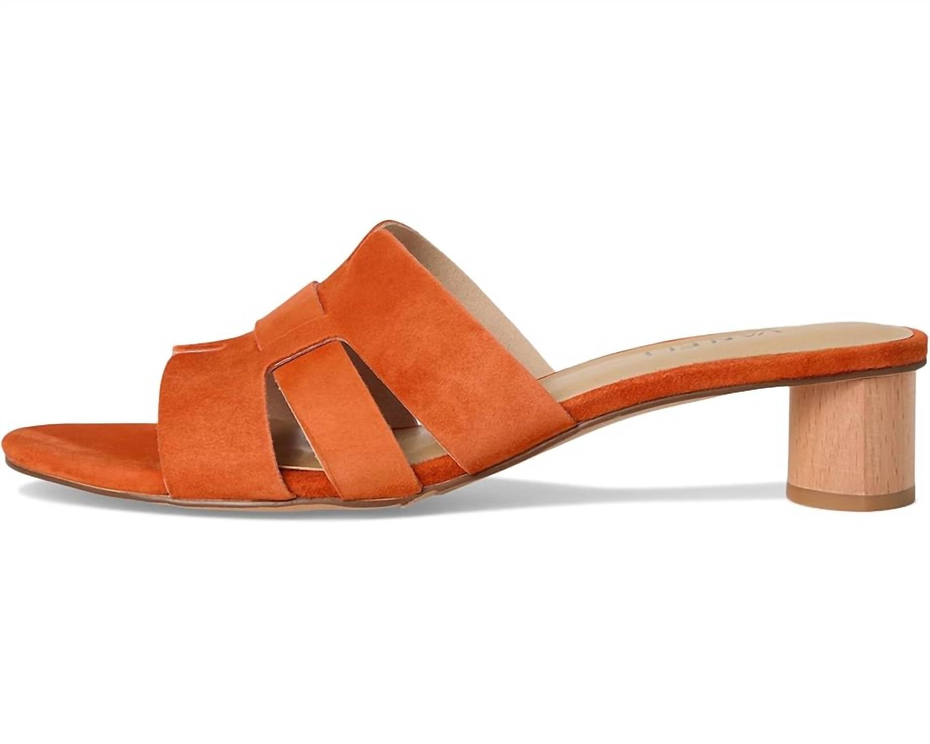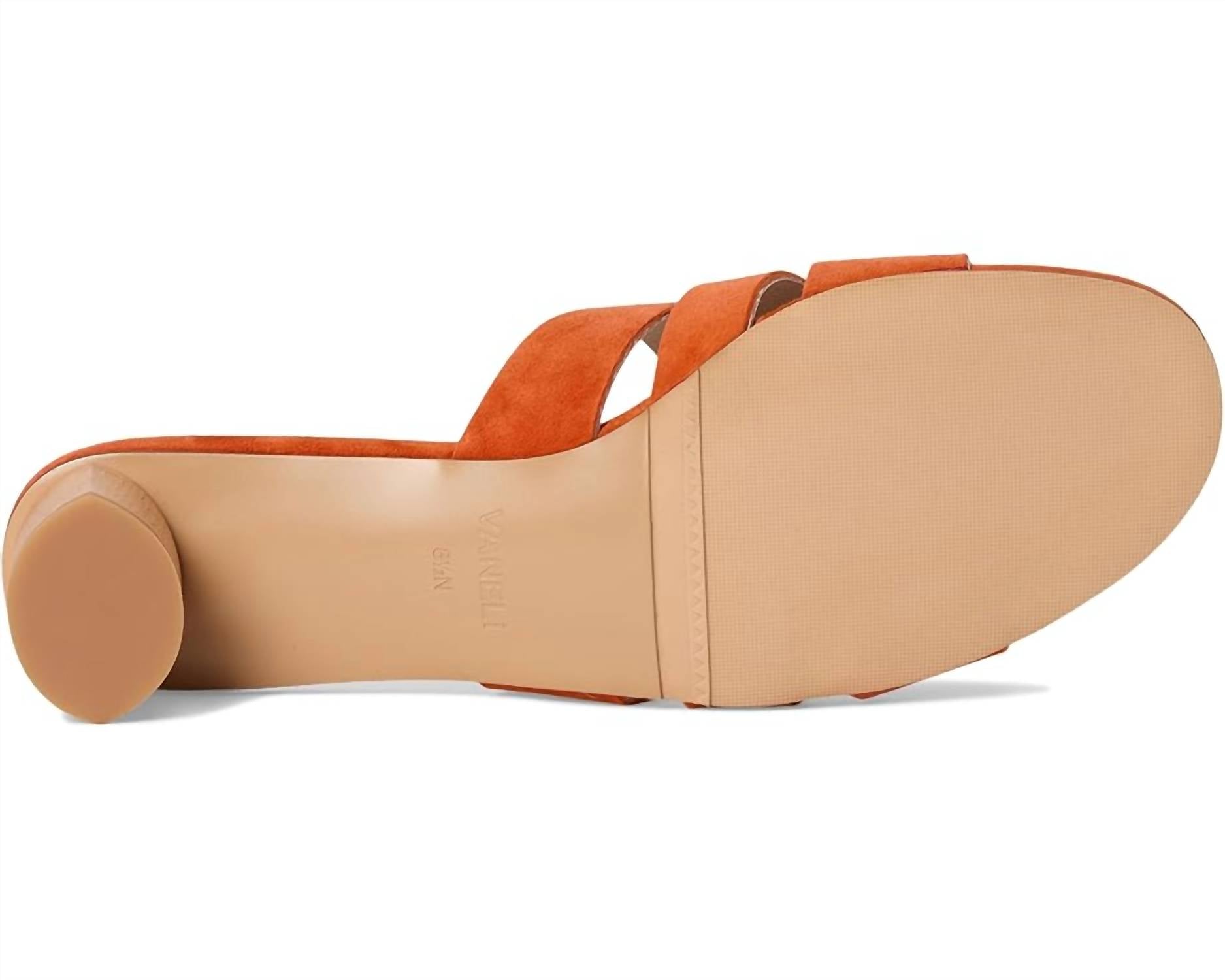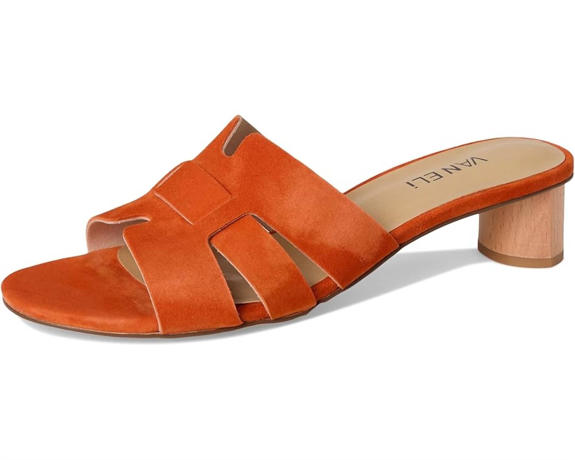 Flowy dresses, cropped pants, and even jumpsuits... this sandal works with them all! Introducing the Women's Heidi Sandals by VANELi, your go-to choice for combining comfort and style this summer. Crafted from luxurious orange suede, they feature a chic block heel and an open toe design, perfect for holiday parties like Thanksgiving. With a heel height of 1.5 inches, these minimalist sandals add just the right lift to any outfit. Elevate your vacation wardrobe with a touch of elegance and vibrant color.
