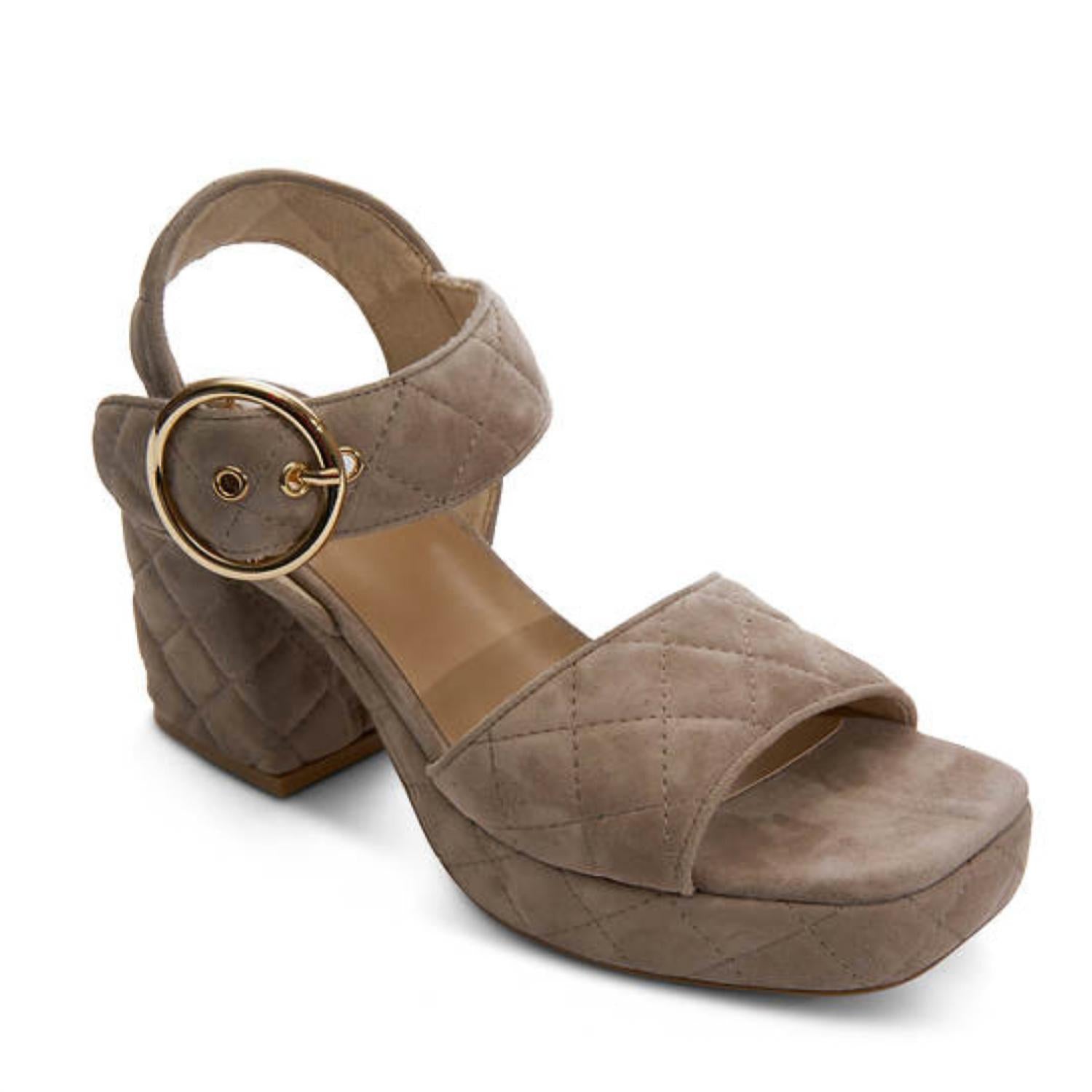 Classicly cute and all-day-wearable. We love this sandal. Step into chic comfort with the Women's Moppet Heeled Sandals by VANELi, a perfect choice for both style and ease. Crafted from a soft suede leather upper, these sandals feature a block heel height of 3 inches with a 1-inch platform for added stability. The design includes a wide strap over the toes and a thick ankle strap with an adjustable circular buckle, ensuring a customized fit. Ideal for casual wear and seasonal gatherings, these taupe truffle sandals add a minimalist touch to your spring holiday look.