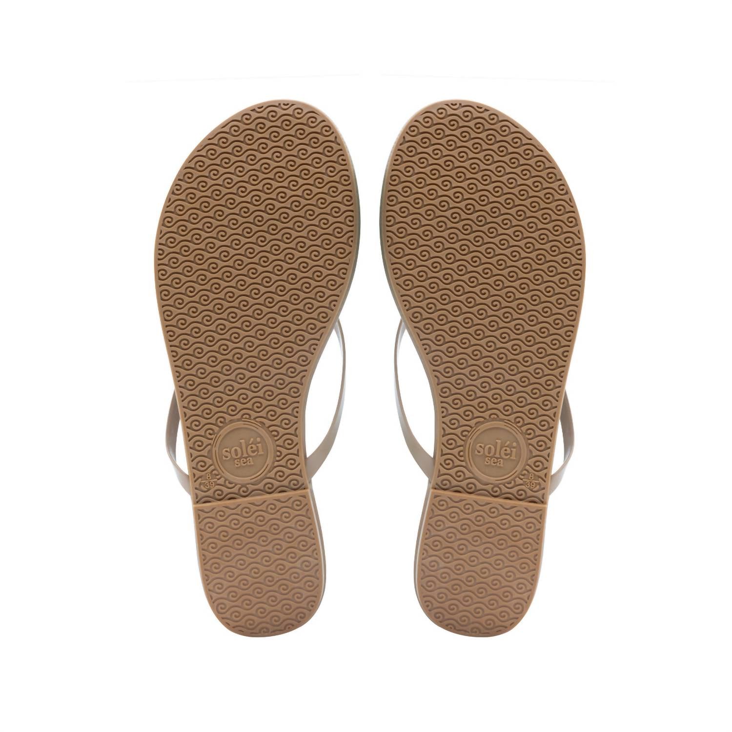 Classicly cute and all-day-wearable. We love this sandal. Experience the perfect blend of minimalism and comfort with the Women's Indie Flip Flops by Soléi Sea These sandals feature a vegan leather upper, recycled outsole, and open toe design, enhanced with slim straps and a flat heel measuring under 1 inch. They offer exceptional comfort with a cushioned footbed and padded arch support, along with non-slip rubber bottoms embossed with signature Soléi waves. Ideal for anything from beach visits to casual outings, these sandals come with a reusable cotton drawstring bag and a playful ponytail holder. For care, clean with mild soap and water.