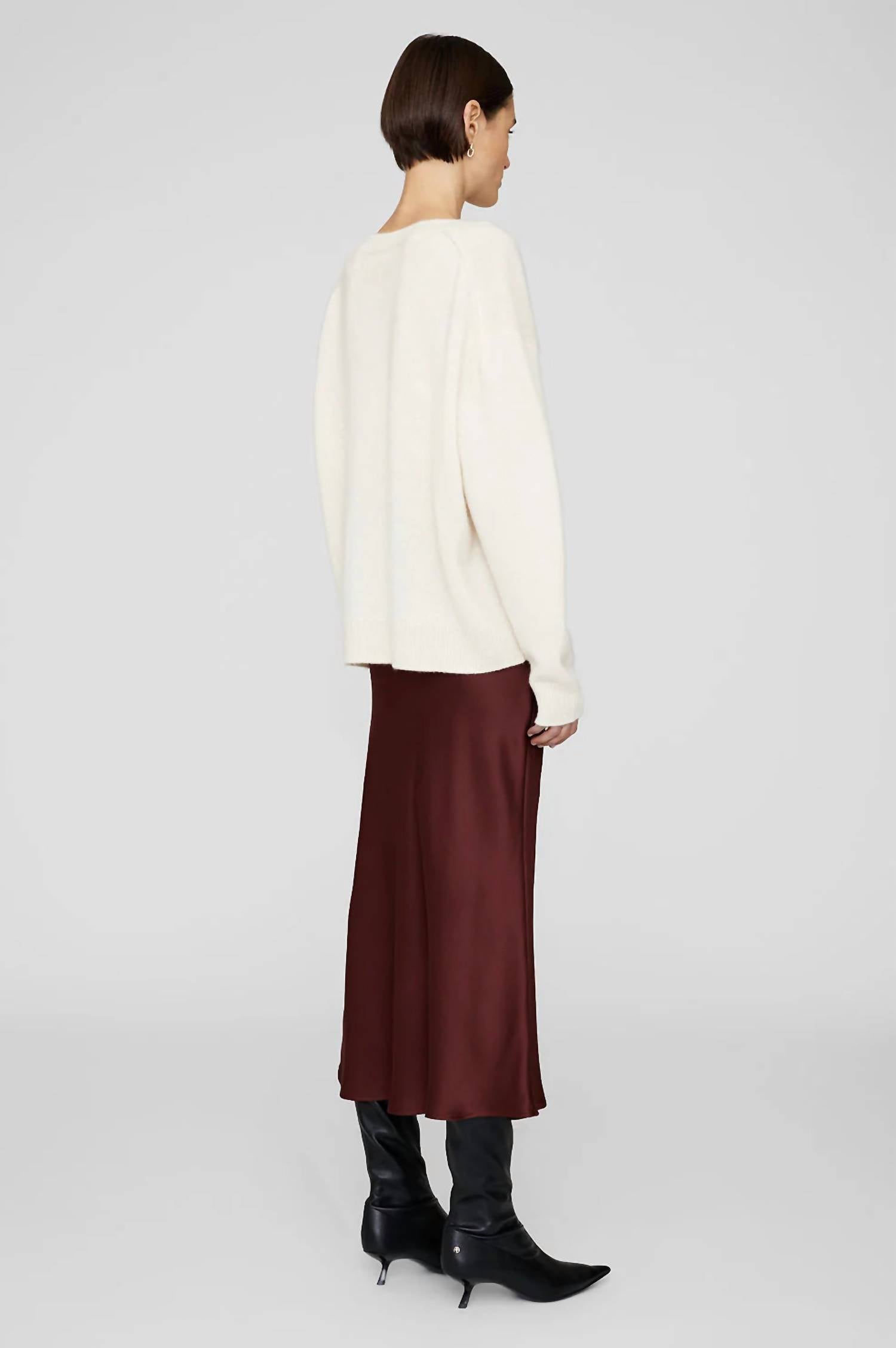Tuck your favorite tee into this midi length skirt for an effortlessly cool look. Experience luxe elegance with the ANINE BING Bar Silk Midi Skirt in a rich Dark Cherry hue. Crafted from 25 mm double-faced silk charmeuse, this high-waisted midi skirt is designed with a flattering bias cut that embraces your curves through the hips. Made for comfort and ease, it features an elasticated waistband for a simple pull-on closure. Care: Dry clean only.