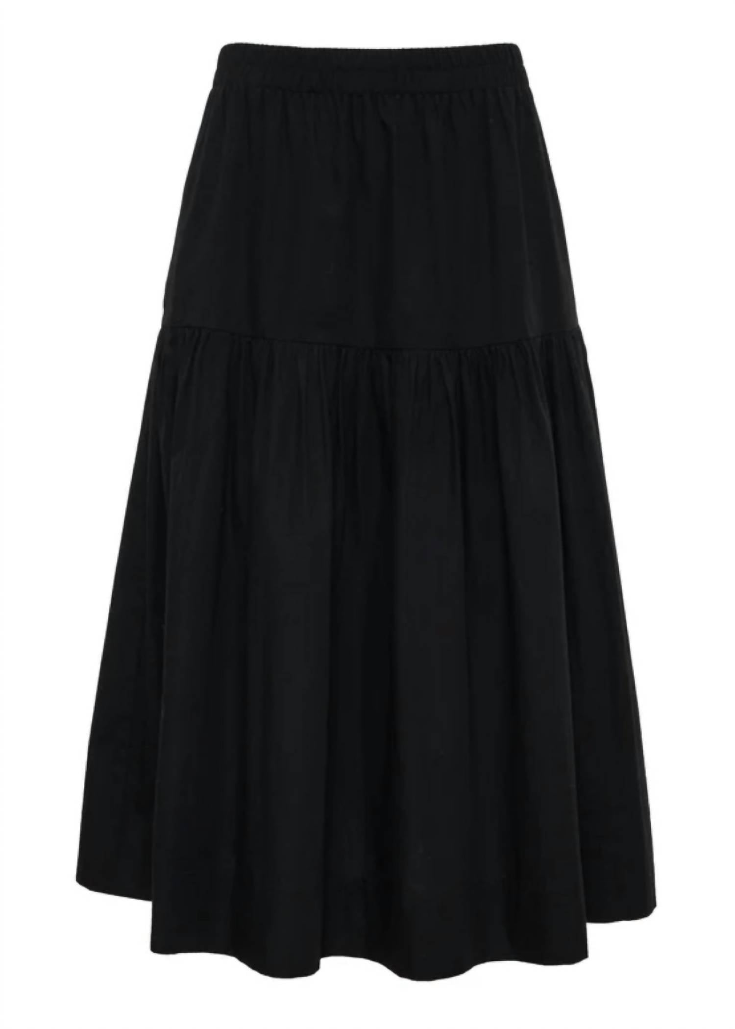 The midi length skirt is here to stay and we especially love this style. Elevate your spring vacation wardrobe with the Poplin Prairie Skirt by Sanctuary, a chic women's midi skirt crafted from 100% cotton in a solid black pattern. This relaxed fit skirt boasts a high-rise design and convenient pockets, courtesy of its elastic waistband and pull-on closure. Made with BCI Cotton Voile, it combines sustainability with effortless style. Care instructions include machine wash cold and lay flat to dry for easy maintenance.