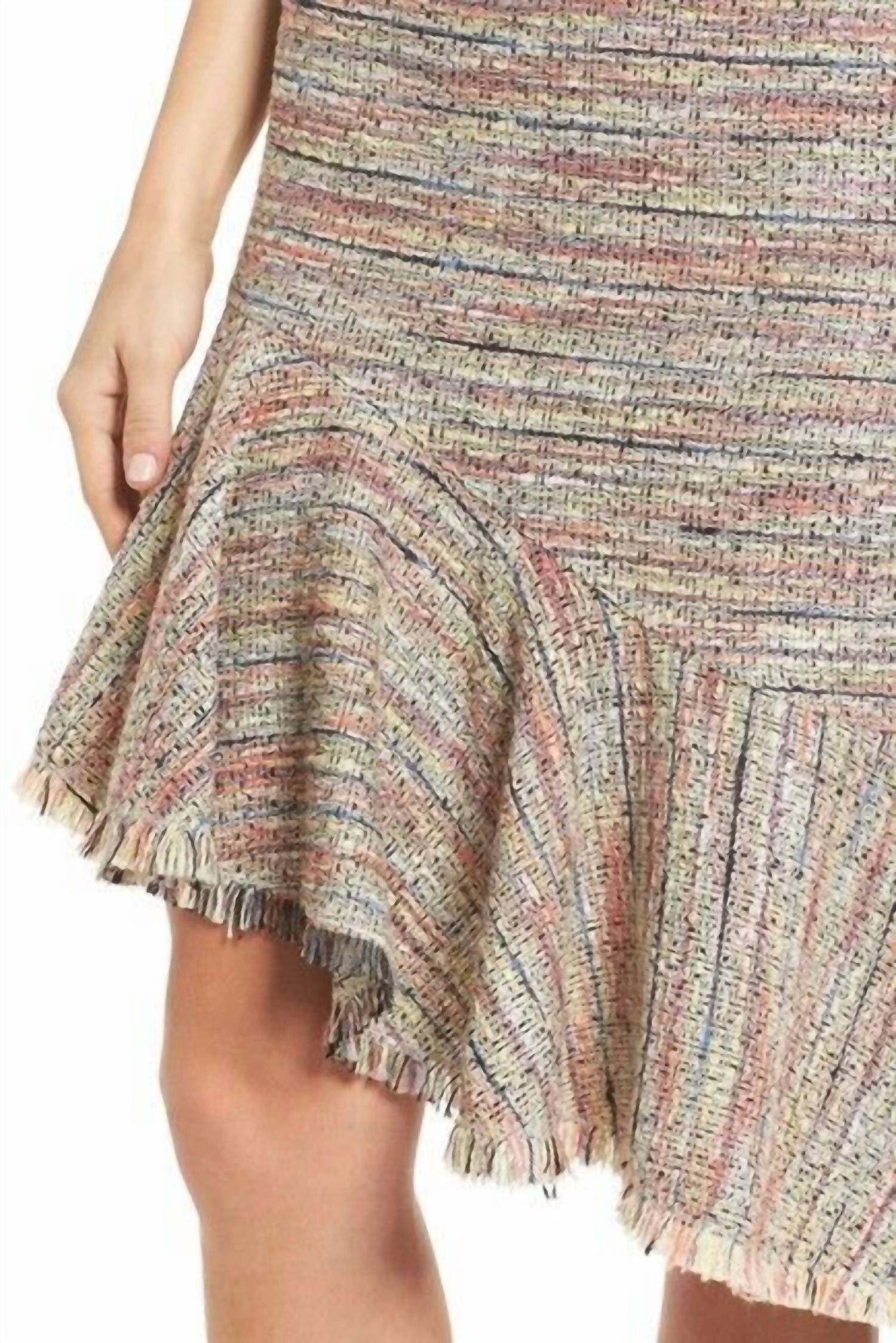 Tuck your favorite tee into this midi length skirt for an effortlessly cool look. Introducing the Tweed Asymmetrical Fringe Hem Midi Skirt by Halogen, a playful twist on classic tweed. Crafted from 36% polyester, 35% acrylic, 22% cotton, and 7% rayon, this skirt features a fun fringe trim and playful asymmetrical hem that scores top marks for style. With a hidden side-zip closure, it offers a sleek and smooth fit. The skirt is lined for added comfort, and its dimensions range from 21" at its shortest to 28" at its longest, with a waist circumference of 31" and a front hip measurement of 21.5". This multicolor skirt is best cared for with dry cleaning.