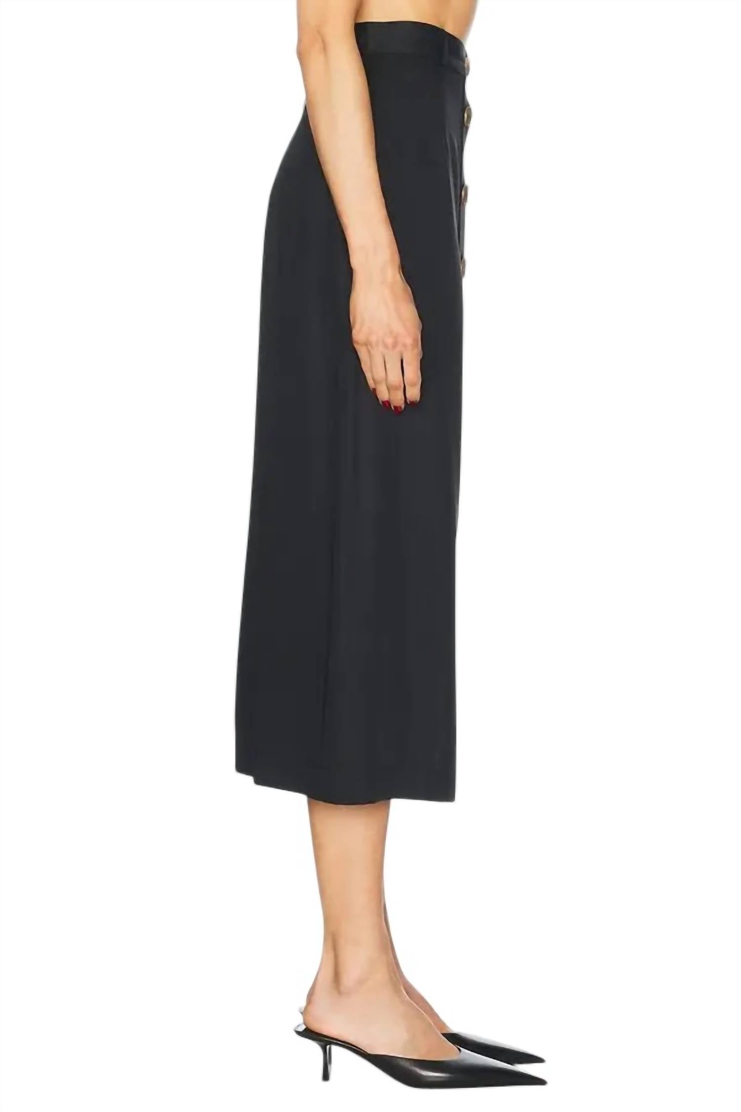 Tuck your favorite tee into this midi length skirt for an effortlessly cool look. Discover the Button Front Midi Skirt by Matthew Bruch, a chic piece that exudes quiet luxury perfect for dinner parties or New Year's Eve. This skirt, crafted entirely from lyocell, features a refined button closure adorned with gold buttons for a touch of elegance. Made in the USA, this solid black skirt is a sophisticated option for the spring season. Care: Dry clean only. 100% Tencel.