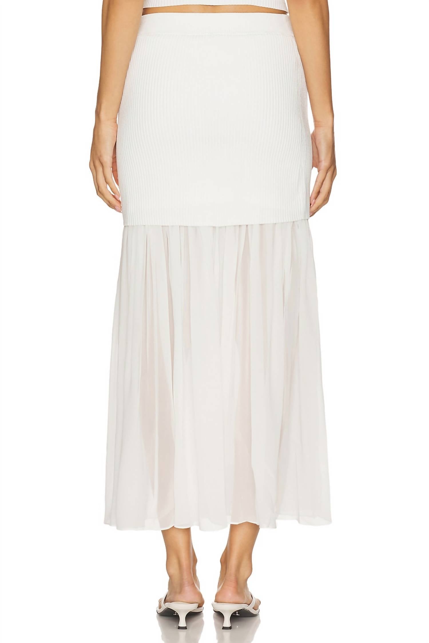 Show off just the right amount of skin in this beautifuly designed midi length skirt. Discover the A.L.C. Hayden Skirt in a stunning Pearl hue, a perfect blend of sporty style and elegance for women. This midi skirt is crafted with a medium-weight crepe fabric, featuring a textured pattern with self composed of 62% rayon, 35% nylon, and 3% elastane, complemented by a 100% rayon lining and contrast fabric in 100% silk. The pull-on closure and elastic waist ensure comfort and a flattering fit, with a garment length of 36 inches. Care instructions recommend a gentle hand wash to maintain its pristine look.