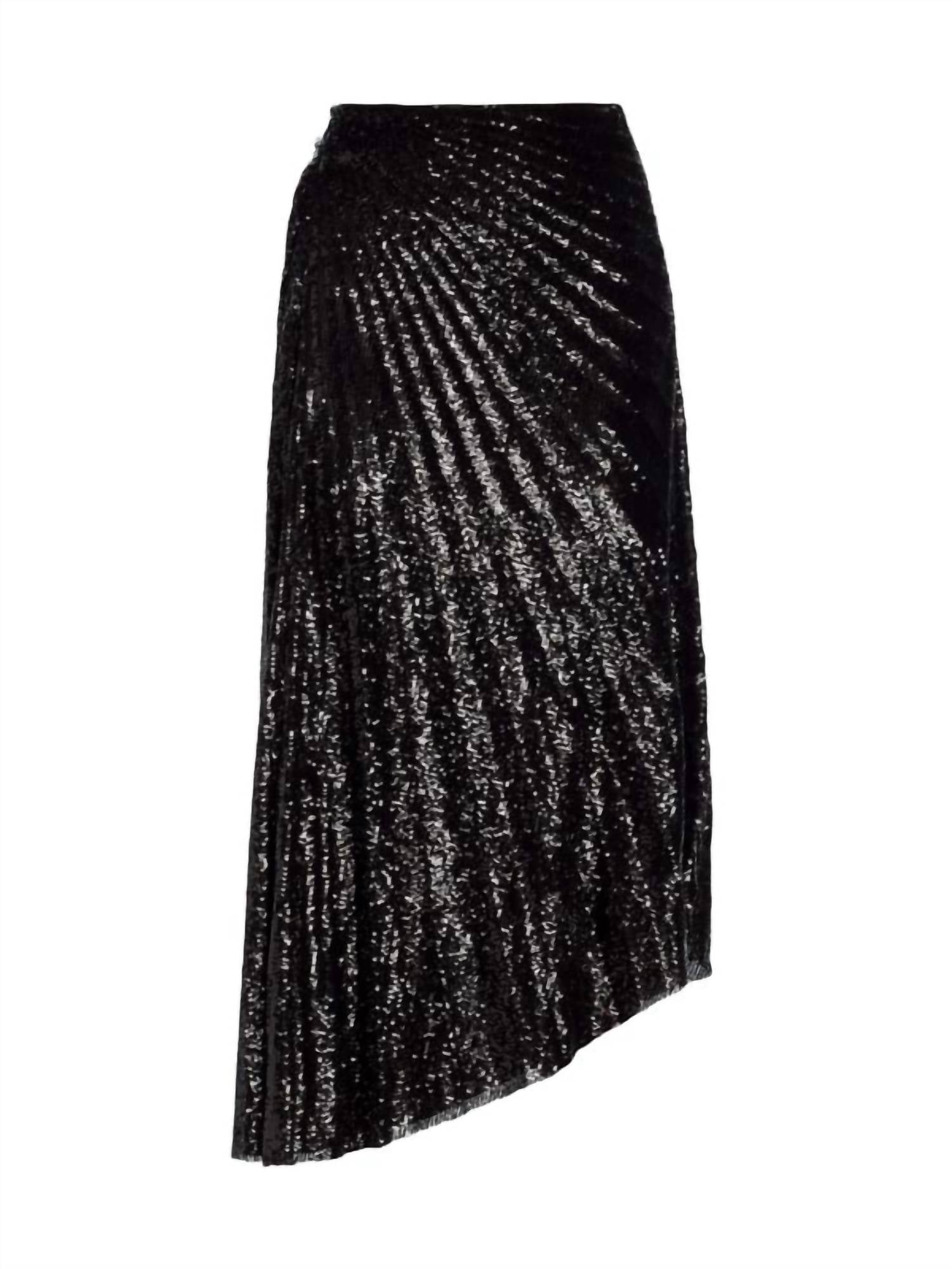 Show off just the right amount of skin in this beautifuly designed midi length skirt. This sequined midi skirt is designed with a pleated finish and an asymmetric hem for a striking silhouette. A stretch waistband ensures comfort, while a side zip with hook-and-eye closure provides a secure fit. Shell: 100% nylon. Lining: 96% polyester, 4% elastane.