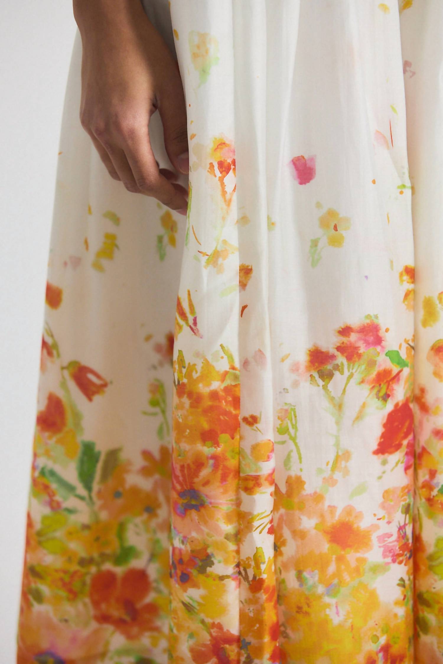 The midi length skirt is here to stay and we especially love this style. Embrace boho chic with the Alexia Organza Pleated Maxi Skirt by Derek Lam 10 Crosby, perfect for a holiday party. This striking midi-length skirt, measuring 33.5 inches, features a captivating floral pattern in a white and papaya multi color scheme. Made from a 80% Tencel, 20% Nylon blend for a delicate yet durable finish, it embraces a light and airy quality ideal for spring. Crafted for women with a sophisticated style, this piece requires dry cleaning to maintain its pristine condition.