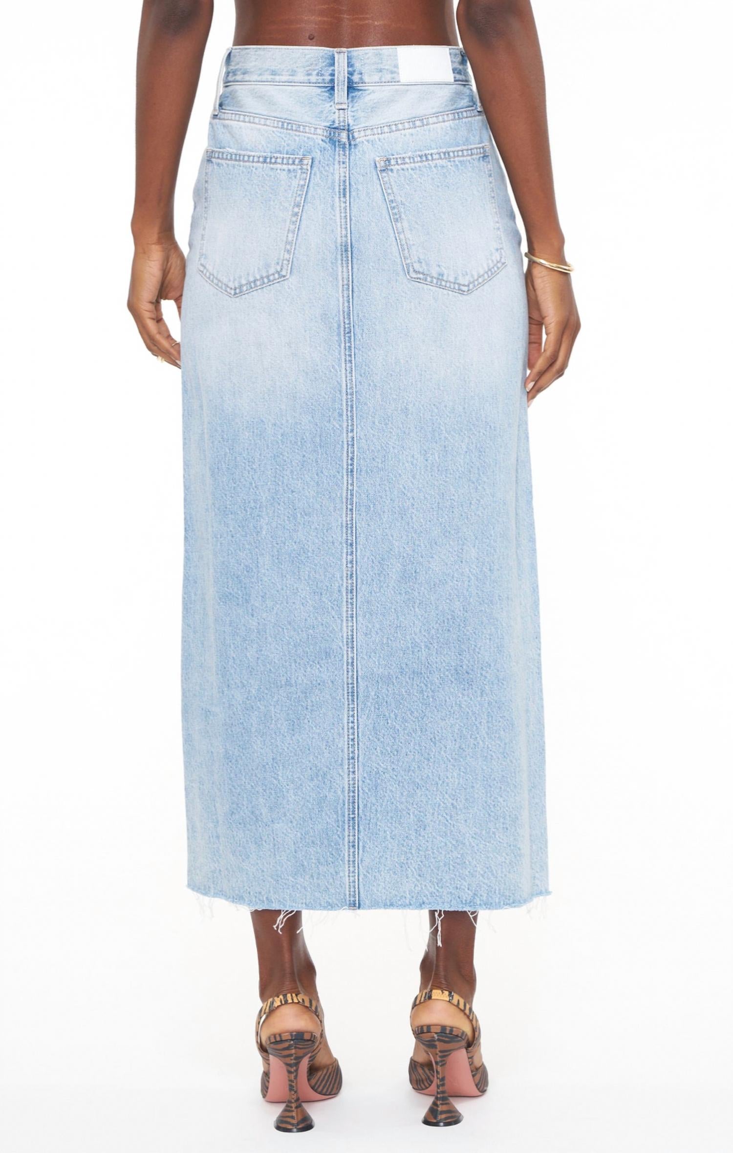 The midi length skirt is here to stay and we especially love this style. Meet the Alice Denim Midi Skirt by PISTOLA, a chic addition to your wardrobe in a classic dark wash Brooklyn color. Crafted from 100% cotton, this 37" midi skirt offers a button closure and a fashionable front slit for ease of movement. Made with solid denim, it reflects a relaxed fit, staying true to size, and includes pockets for practicality. Sourced for those embracing 90s fashion and ideal for travel, it pairs perfectly with spring attire. Care for it with a cold machine wash. Model is 5'10" and is wearing size 26.