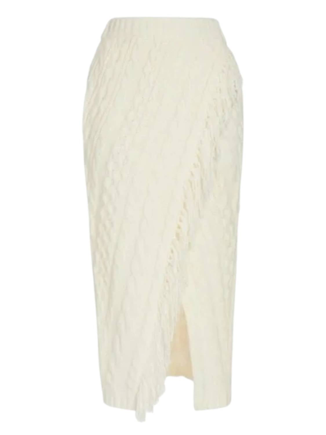 Show off just the right amount of skin in this beautifuly designed midi length skirt. Presenting the Cableknit Sweater Skirt by SOMETHING NAVY, an elegant choice for your dinner party ensemble. This midi-length skirt in a textured ivory design features a comfortable pull-on closure, aligning with a chic boho style. Perfect for summer occasions, it embodies effortless sophistication.