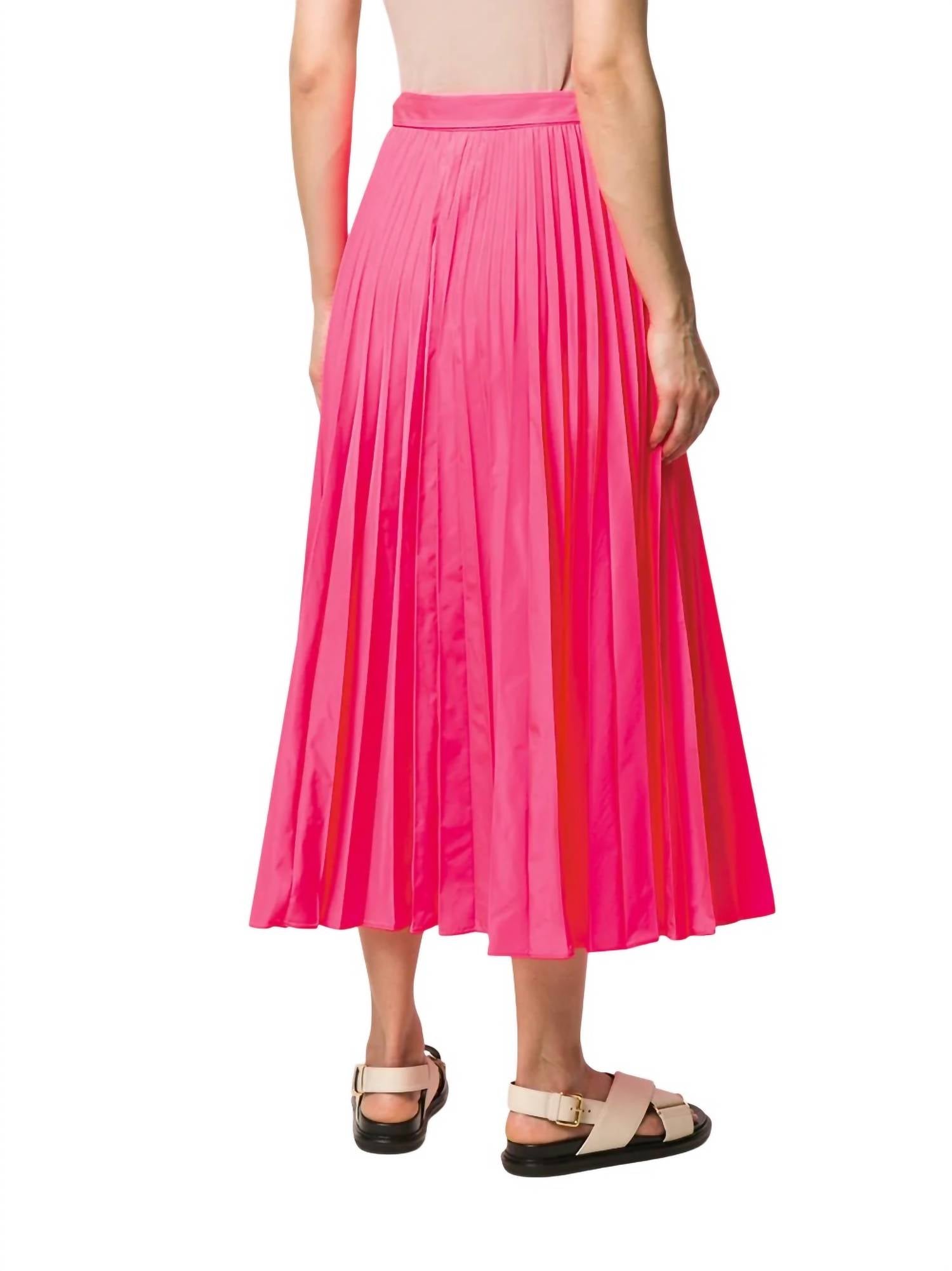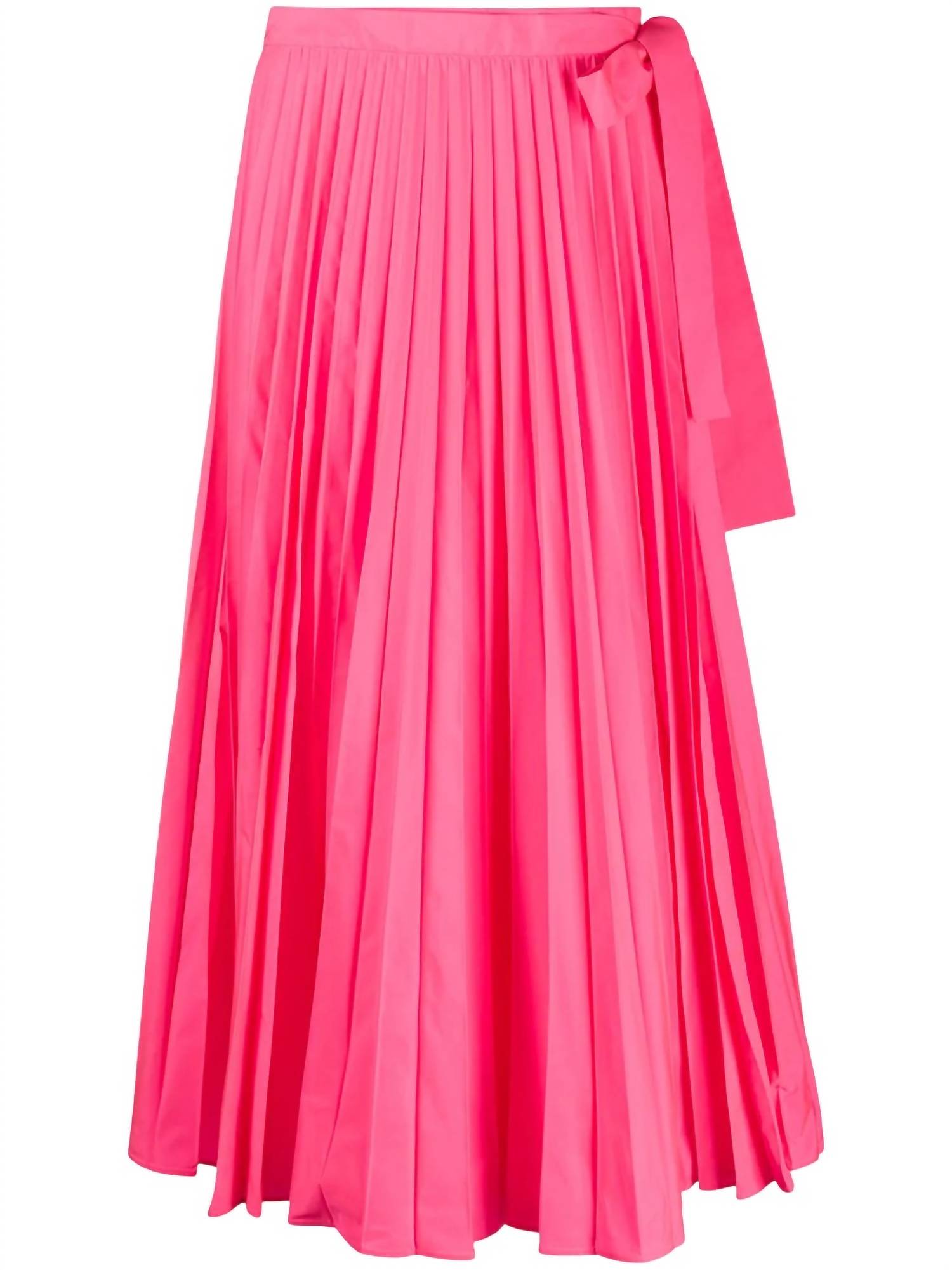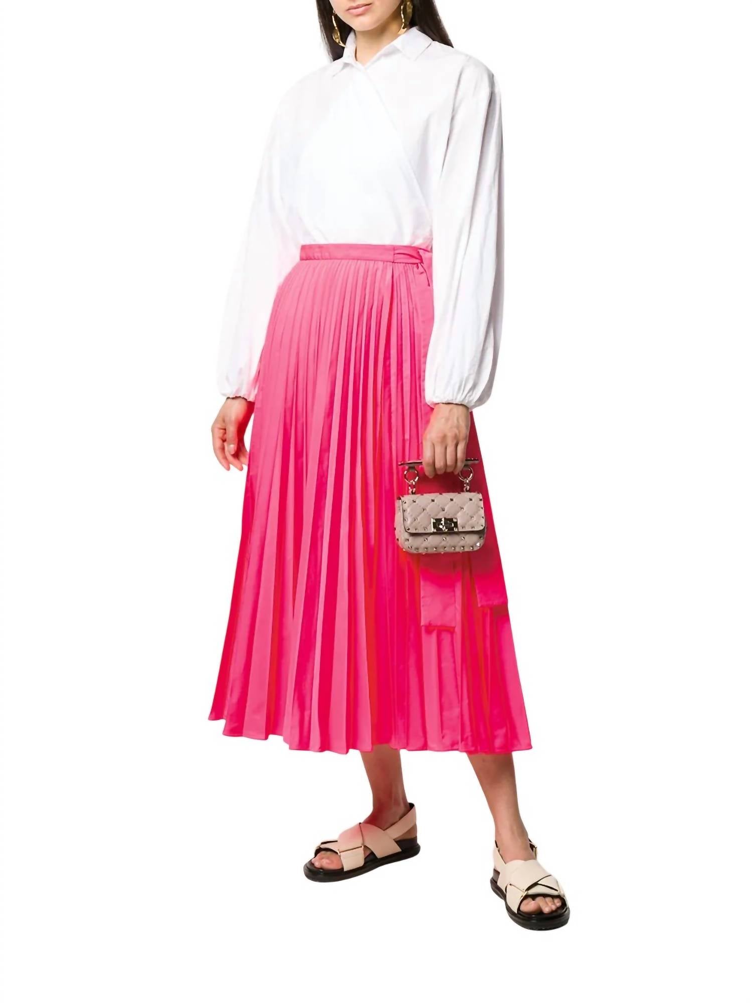 Show off just the right amount of skin in this beautifuly designed midi length skirt. Embrace elegance with the Women's Tied-Waist Pleated Skirt by Valentino, crafted to enhance your evening ensemble. This mid-length skirt in a solid pink hue offers a sophisticated high-waist design and fully pleated detailing. Made in Italy with 100% polyester, this piece features a front tie closure, ensuring a perfect fit for dinner parties or special occasions.