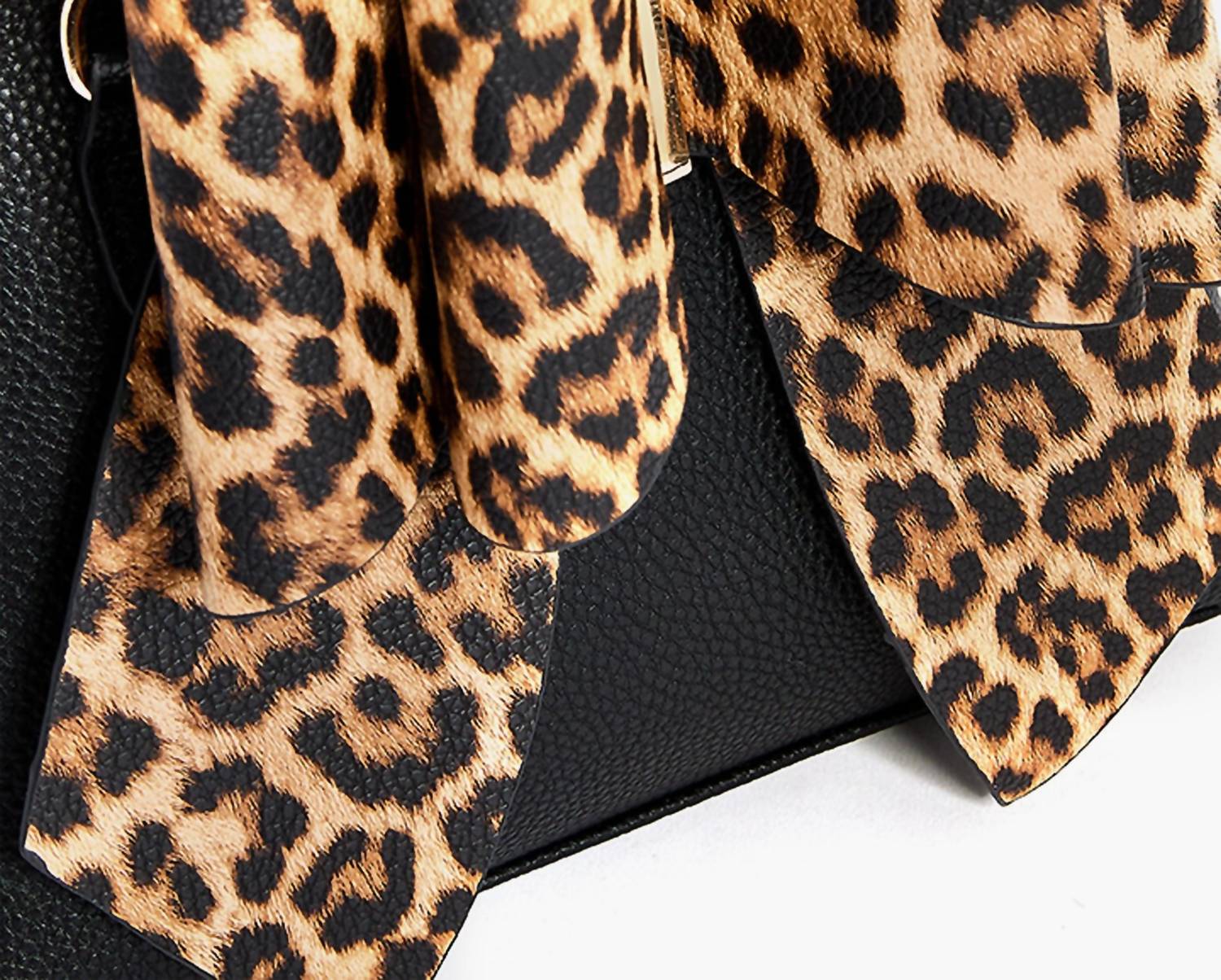 Like Dreams - Women's Leopard Top Handle Bow Crossbody Bag
