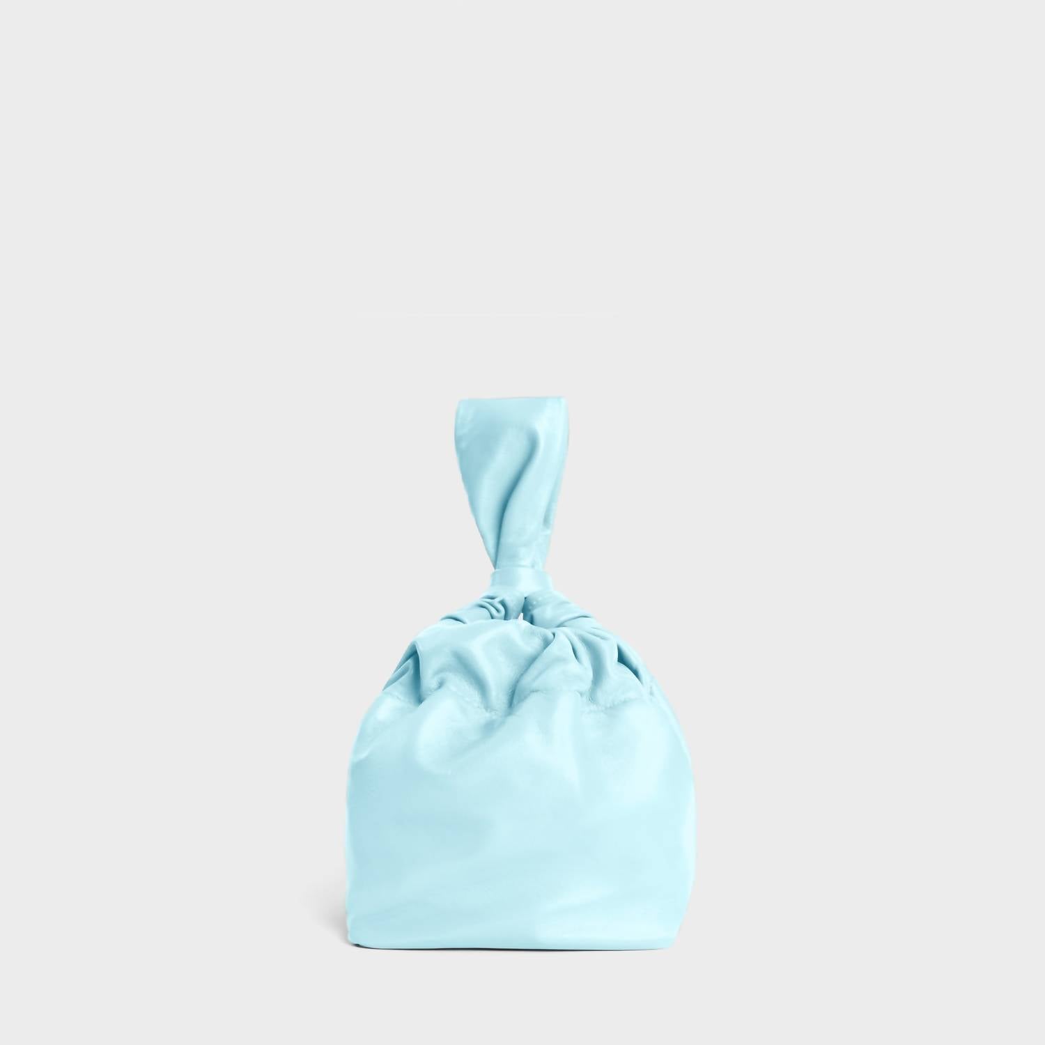 This little number holds all of the important things... lipstick, mints, credit card. Elevate your accessory game with the Women's Mariposa Wristlet Leather Handbag in Light Blue from Lemiz. Handcrafted from supple Italian lamb, this mini bag features a wristlet strap for hands-free convenience. It fits an iPhone Max and includes an inside pocket, making it a practical choice for travel. With dimensions of 7 inches in height and 6.5 inches in both depth and width, it neatly packs flat and is lined with durable cotton canvas. Handcrafted in Los Angeles, this clutch combines style with functionality.