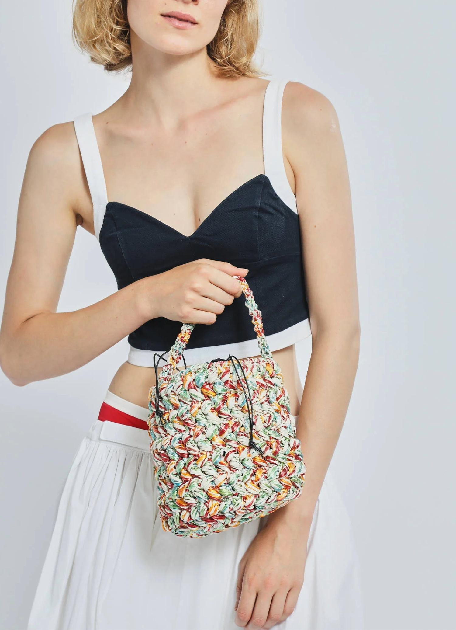 Now trending: Mini bags! Introducing the Women's Micmac Bag by Maria La Rosa, a vibrant piece crafted from crocheted raffia in a spirited multicolor design. Expertly handcrafted in Italy, this bucket bag effortlessly combines natural raffia with intricate crochet, resulting in a modern, stylish silhouette. Despite its compact form, it provides ample space for your essential items, making it a versatile accessory for any occasion. Embrace a touch of freshness and originality with this distinctive mini bag.