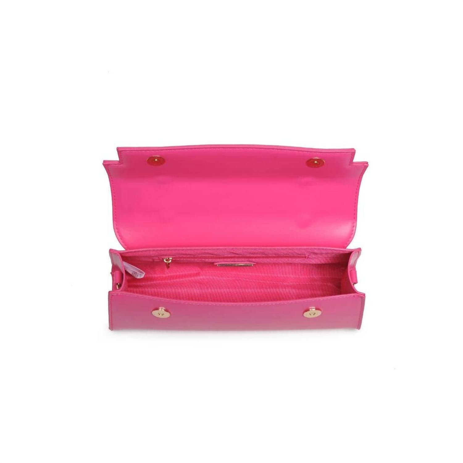 Now trending: Mini bags! Elevate your ensemble with the Women's Top Handle Adjustable Crossbody Bag by Urban Expressions in vibrant fuchsia. This chic mini bag is designed with an 11" bottom width tapering to a 10" top width, and a height of 5", making it a compact yet stylish accessory. It features an adjustable length crossbody strap and offers a double magnetic snap closure, with a fabric-lined interior and a handy inside zip pocket. This bag also includes a protective storage bag to keep it pristine.