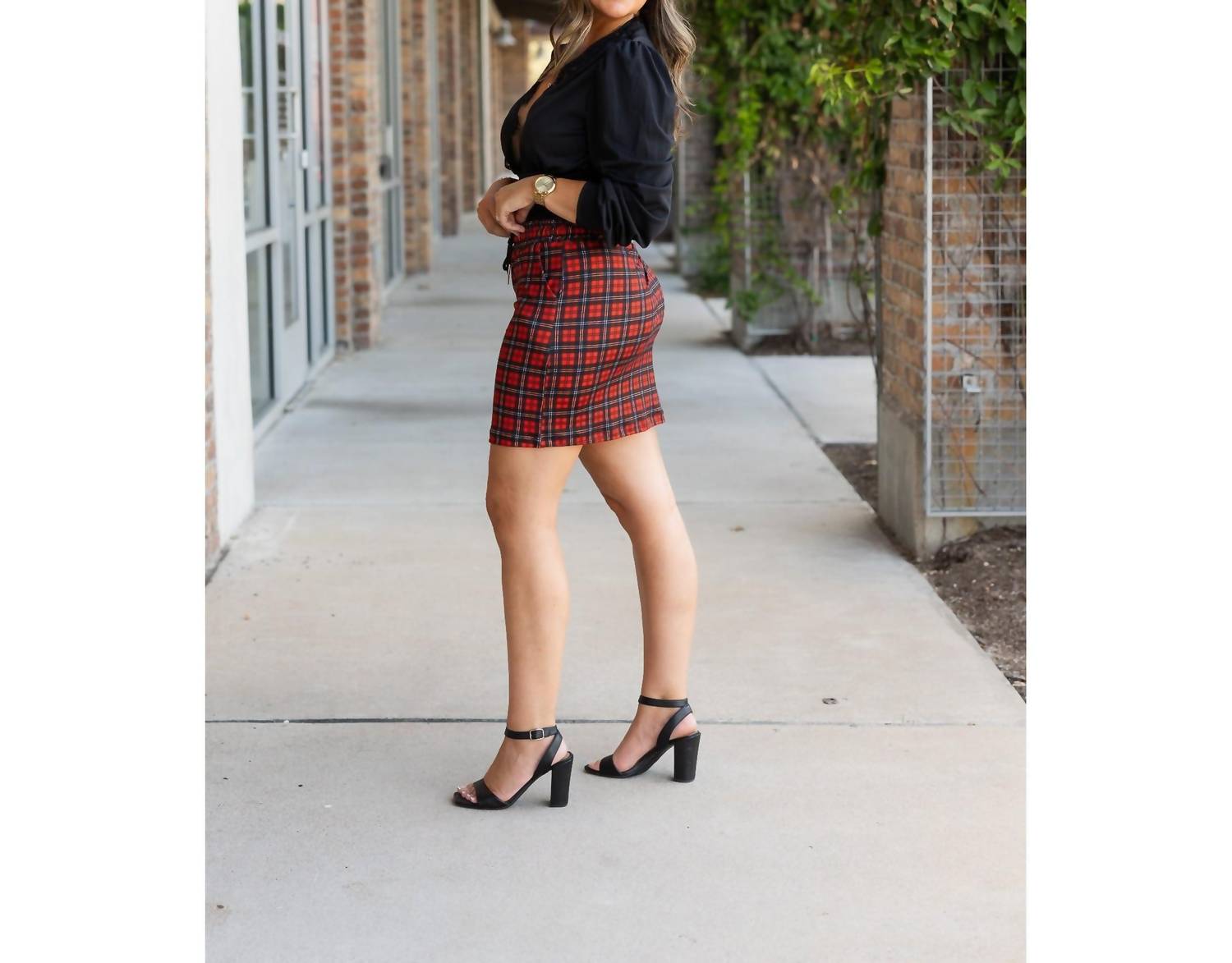Show just the right amount of leg in this fit flattering mini. The Helena Plaid Jogger Skirt by Julia Rose is a striking mini skirt in a lively Red Plaid design, perfect for infusing your summer wardrobe with '90s fashion charm. Crafted from 92% Polyester and 8% Spandex, this pull-on style ensures comfort with its jogger elements and practical pockets for carrying essentials. With a garment length of 16 inches, it offers a playful yet convenient option for warm-weather outings. Available in sizes ranging from S/M to 2XL/3XL, it caters to a wide range of figures.