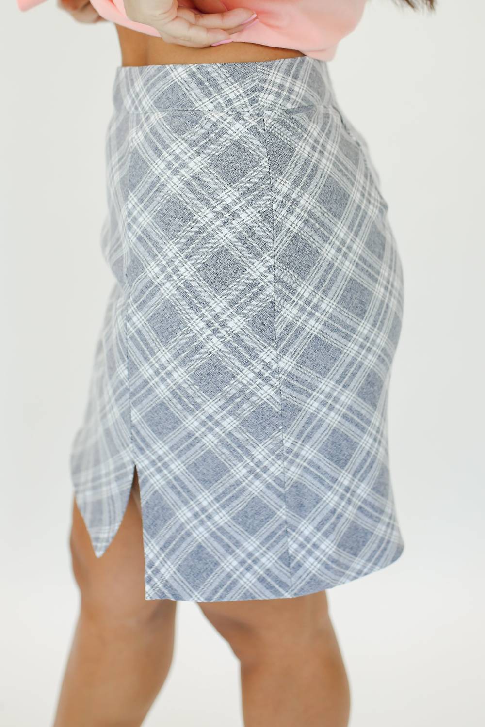 This skirt featuring sleek lightweight material, zip back closure, and an accent slit, and a flattering fitting that falls into a straight mid-thigh length hemline. 100% Polyester. Model is a US size Small. Height: 5'2". Bust: 33". Waist: 27". Hips: 35".