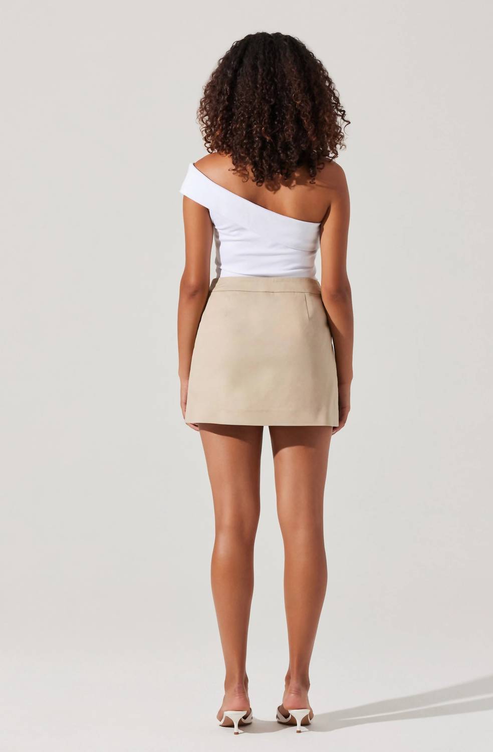 Tuck in your favorite tee for a more laid-back vibe. Introducing the Chana Pleated Wrap Mini Skirt by ASTR, a chic addition to your spring wardrobe in a stylish khaki hue. Crafted from a comfortable blend of 98% cotton and 2% elastane, this skirt features an on-trend asymmetrical wrap design with concealed button closure. This solid patterned mini skirt is ideal for travel and preppy occasions, unlined for a sleek silhouette. Care: Dry clean only.