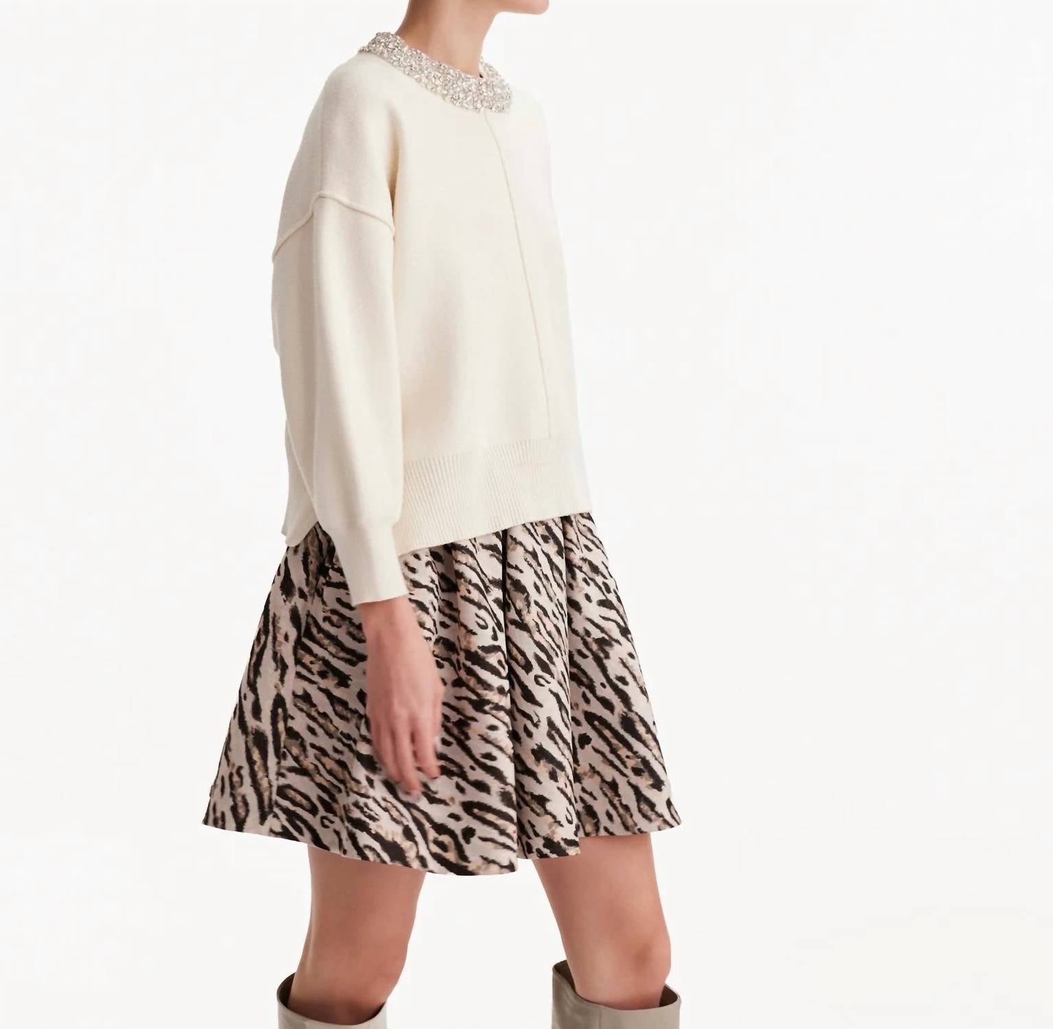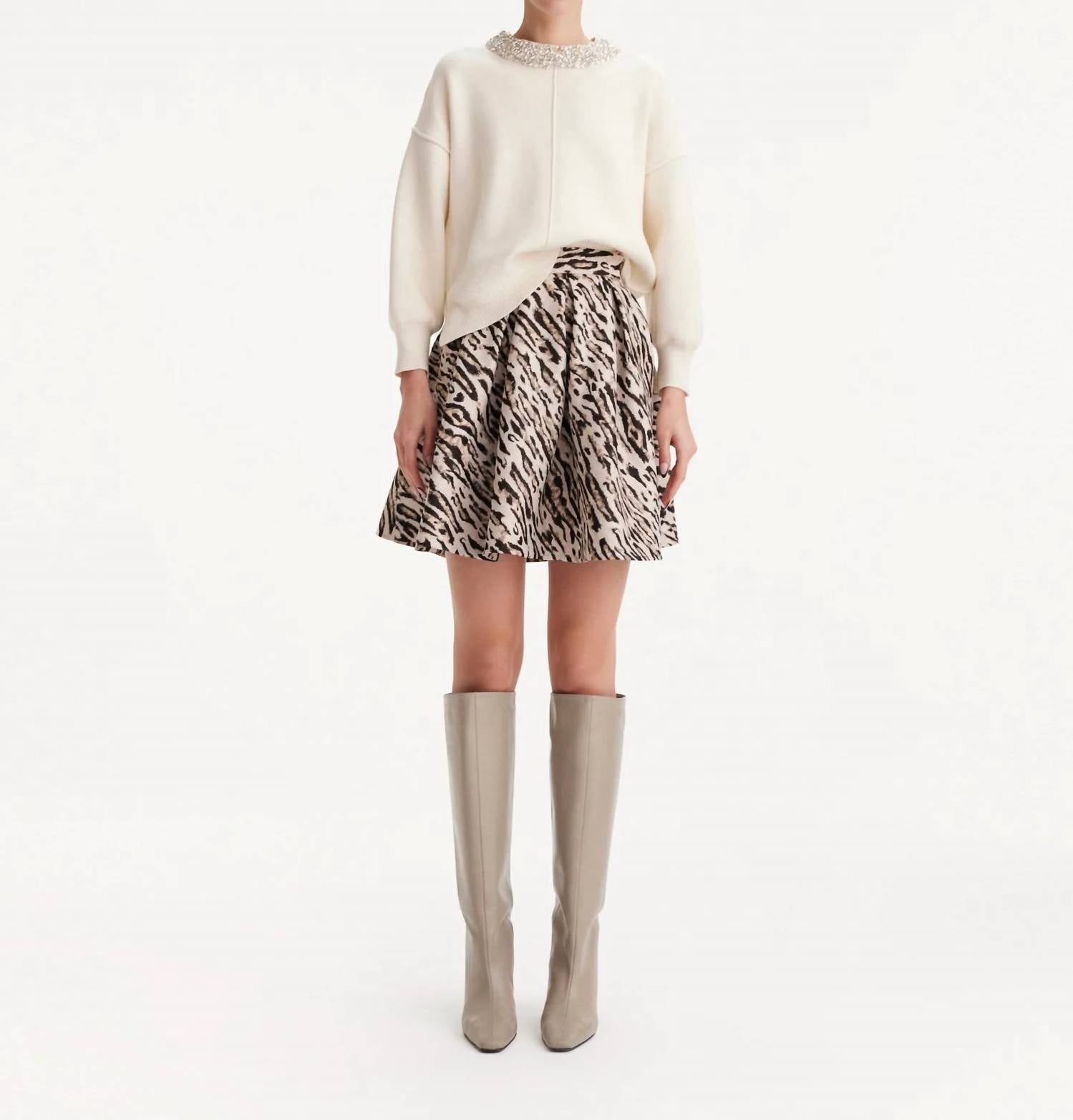 Tuck in your favorite tee for a more laid-back vibe. Introducing the Tyche Pleated Skirt by THEO the Label, a striking piece adorned with a bold leopard print. Crafted from 100% polyester, this 19.68" mini skirt showcases classic box pleats and features functional side seam pockets for added convenience. The set-in waistband provides a sophisticated structure, complemented by a side zip closure for a seamless finish. Made in Turkey, this vintage-inspired skirt requires dry cleaning only to maintain its pristine condition.