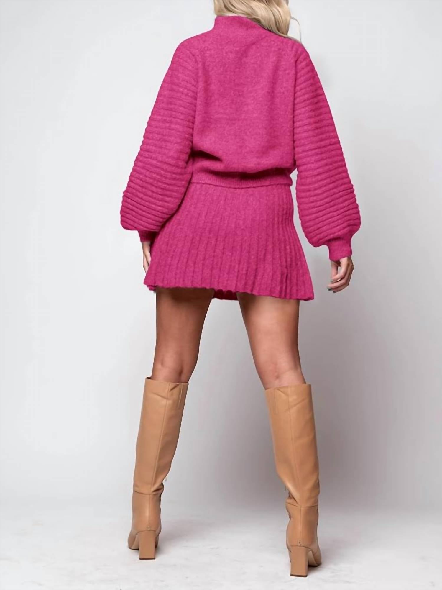 Show just the right amount of leg in this fit flattering mini. Introducing the Mock Neck Sweater Skirt by Sincerely Ours, a chic pink mini skirt crafted for warmth and style. Designed from soft polyester, this solid-patterned skirt seamlessly pulls on for convenience. Made in Poland, it offers a snug fit perfect for the chilly season. Care: Machine wash to maintain its cozy feel.