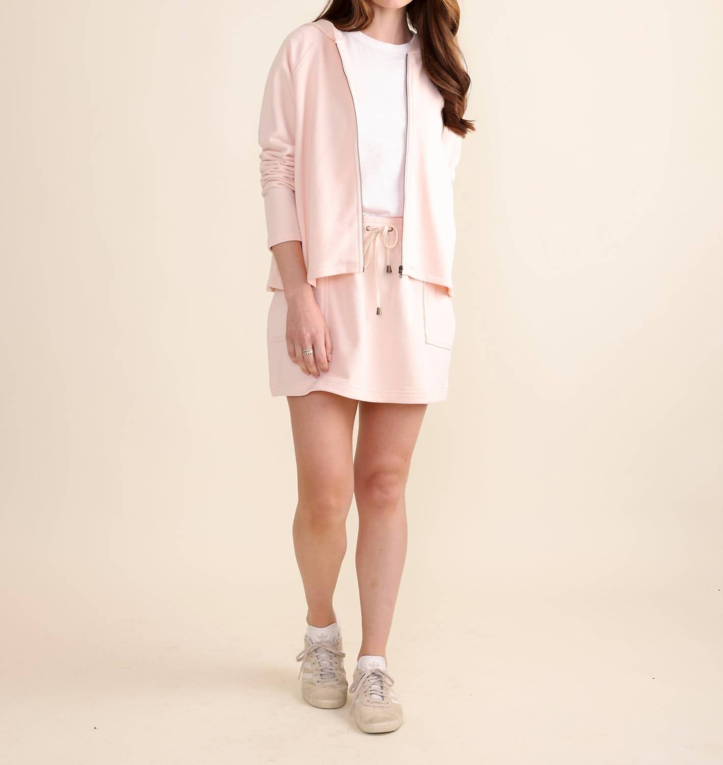 Tuck in your favorite tee for a more laid-back vibe. Introducing the Edisto Skirt by Le Marais, a chic mini skirt in a delicate rose hue crafted from soft cotton. Designed with a convenient pull-on closure, it features functional pockets and an adjustable drawstring for a perfect fit. This solid-patterned skirt exemplifies both style and practicality. Care for it with ease by machine washing and tumble drying.
