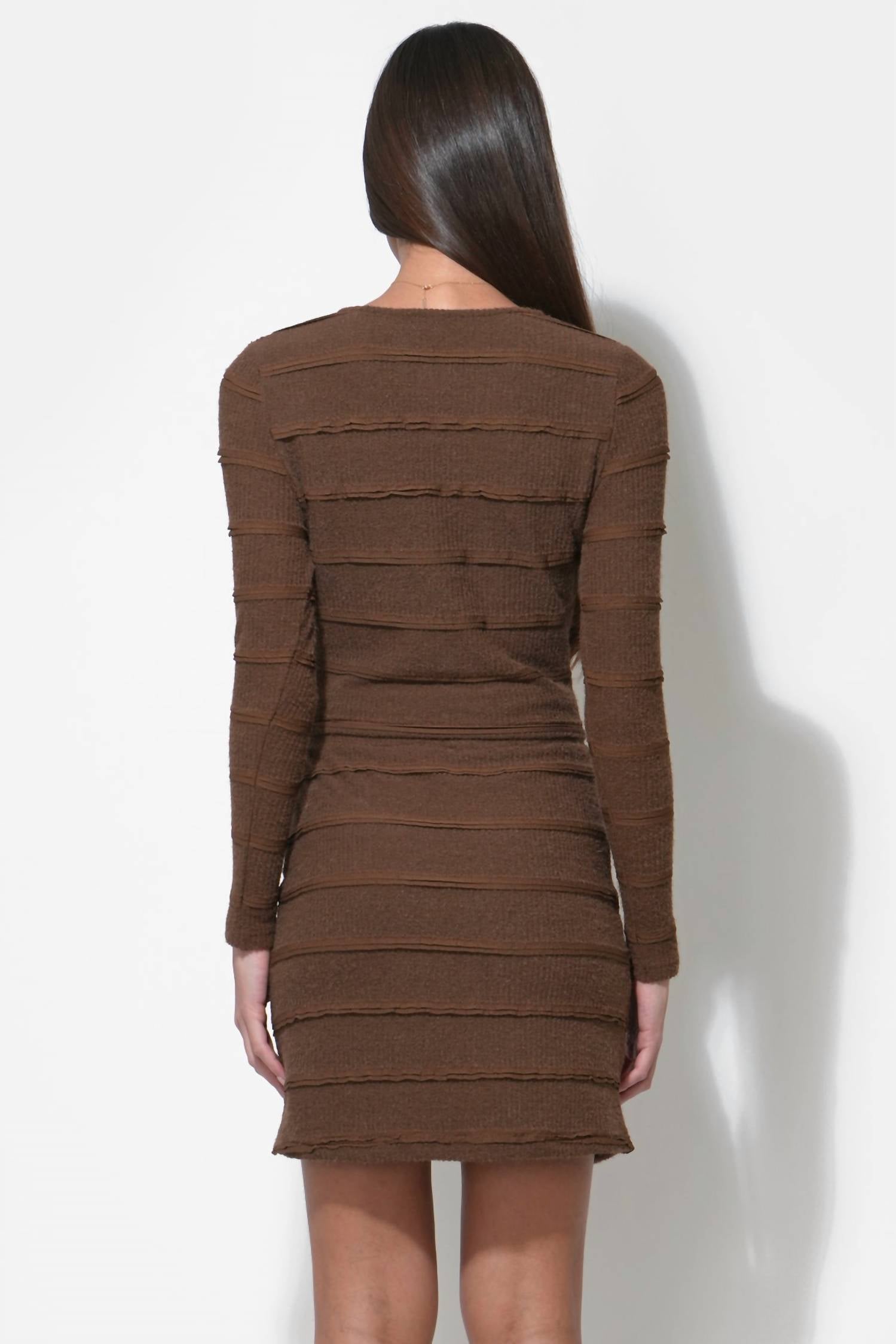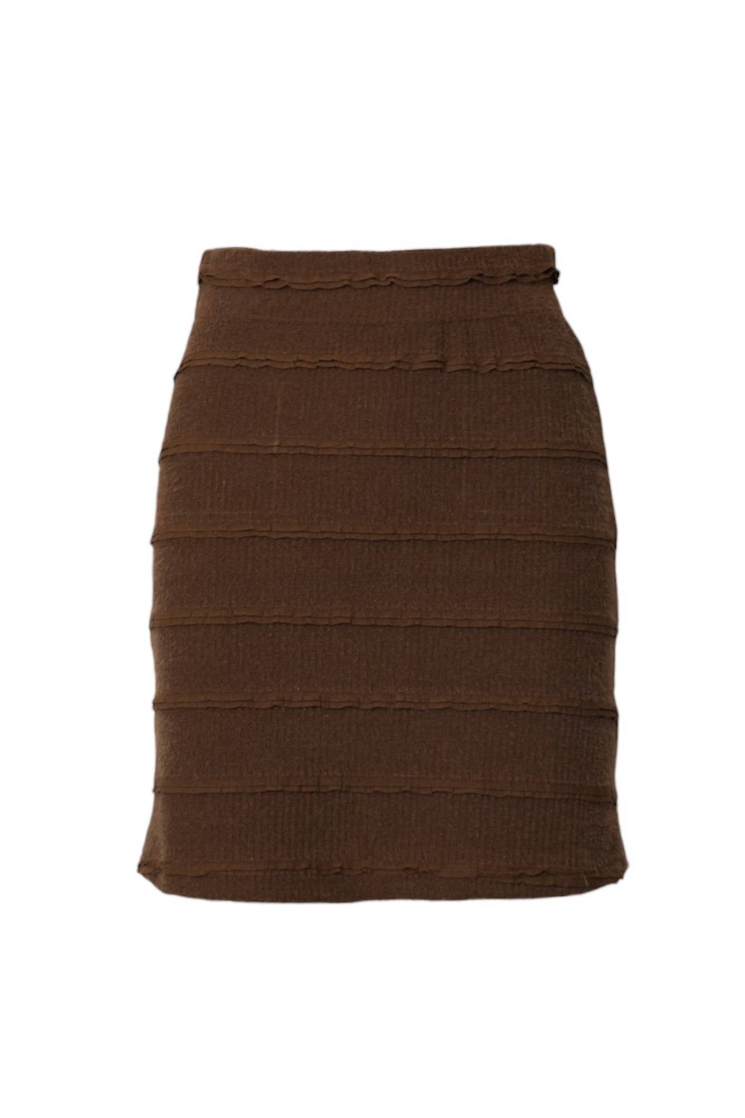 Show just the right amount of leg in this fit flattering mini. Discover the Elsa Knit Fit and Flare Mini Skirt by Adelyn Rae in a sumptuous chocolate brown, a must-have for your fall and winter wardrobe. The skirt's textured pattern highlights a flattering fit and flare design, cinching at the waist and boasting a mini-length hemline. With its feminine silhouette, this skirt is perfect for seasonal styling at holiday parties. Please note no pockets and specific care instructions are not provided.